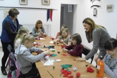 Propozycja edukacyjna cieszy się dużym zainteresowaniem. W warsztatach uczestniczą trzy grupy uczniów. Ze Szkoły Podstawowej nr 2 im. Adama Mickiewicza są uczniowie klas drugich i trzecich pod opieką pań Małgorzaty Śniegockiej, Anny Machowicz i Joanny Starosty, a ze Szkoły Podstawowej nr 1 im. Stanisława Konarskiego dziewczynki z nauczycielką plastyki panią Elżbietą Olejniczak. Dzieci jak zwykle wykazały się niesamowitym zapałem, wyobraźnią i kreatywnością ucząc się nowych umiejętności zgodnych z polską regionalną tradycją. Wykonane przez nie dzieła ubarwią i urozmaicą ozdoby Niedzieli Palmowej.