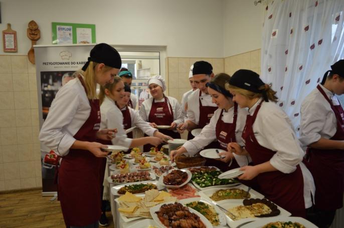 Warsztaty kulinarne z Prymatem cieszyły się ogromnym zainteresowaniem przyszłych kucharzy. 30 młodych adeptów sztuki kulinarnej pracowało nad przygotowaniem przekąsek, dań głównych oraz deseru, które mieli okazję skosztować zarówno uczniowie jak i nauczyciele szkoły.