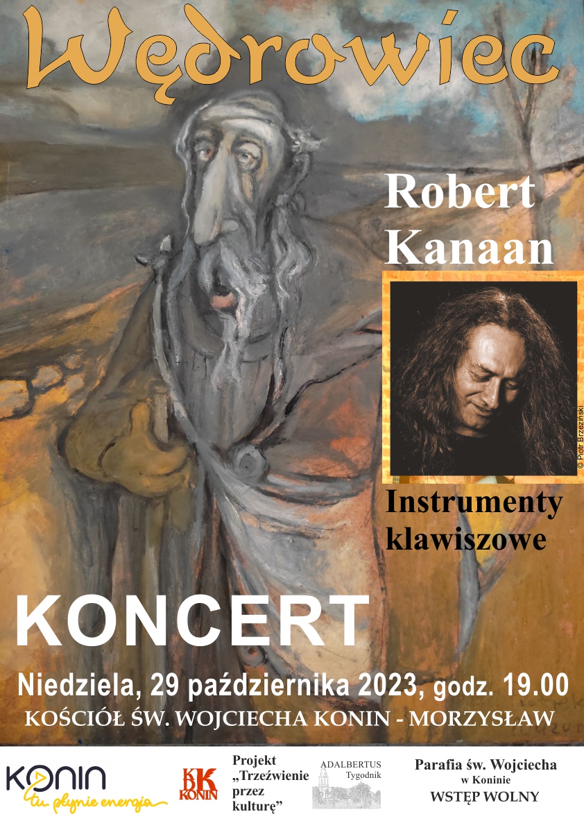 Do Konina przyjedzie z nowym materiałem, którego jeszcze nie wykonywał publicznie, a więc będzie to koncert PREMIEROWY! W morzysławskiej świątyni wybrzmi materiał do nowej płyty zatytułowanej „ Wędrowiec”! Idea drogi, wędrowania, przemijania i wieczności, to idea bliska każdemu z nas, a kompozycje muzyki ilustracyjnej Kanaana pomogą nam zatrzymać się na „moment”, aby z refleksją i przemyśleniami wejść w czas listopadowych dni!