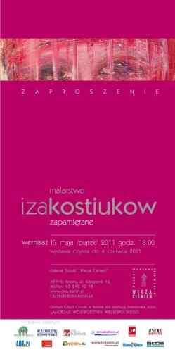 Iza Kostiukow – absolwentka Akademii Sztuk Pięknych w Poznaniu – ówcześnie PWSSP (studia w latach 1988-1993), wcześniej – absolwentka Państwowego Liceum Sztuk Plastycznych w Kole (dyplom z wystawiennictwa w roku 1985). Dyplom z rysunku i malarstwa w pracowni prof. Jacka Jagielskiego – rok 1993. Dodatkowo związana z Pracownią Rzeźby PWSSP. Obecnie – praca w Galerii Sztuki CKiS „Wieża Ciśnień” w Koninie, prowadzenie pracowni rysunku i malarstwa, organizator wielu plenerów artystycznych, uczestnik wystaw krajowych i międzynarodowych. Zainteresowanie artystyczne – malarstwo sztalugowe w technice olejnej.