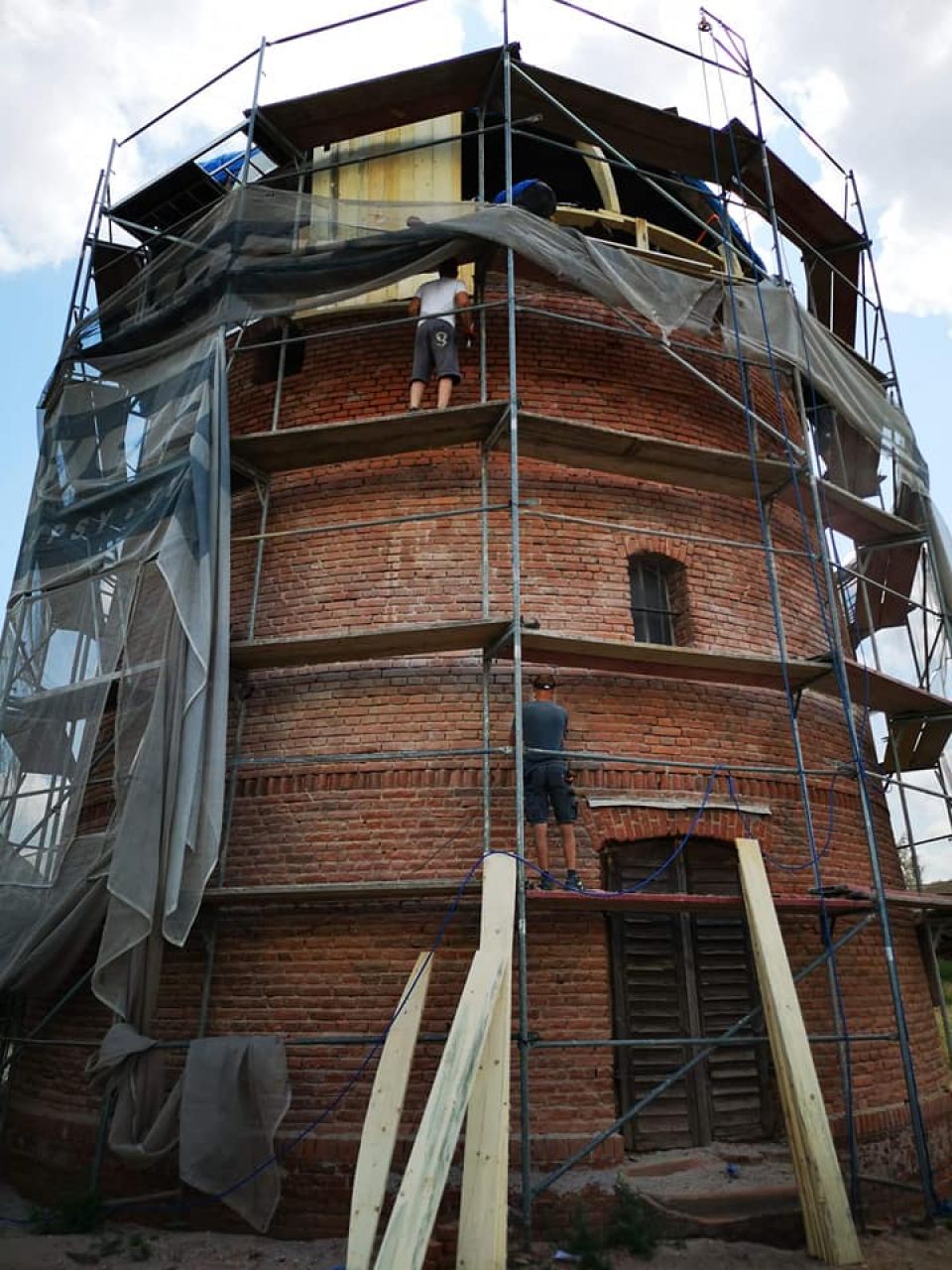 Widać już pierwsze efekty renowacji wiatraka holenderskiego. Wyczyszczono zabytkową cegłę, uzupełniono ubytki, trwa naprawa dachu, a niebawem zamontowana zostanie nowa stolarka okienna.