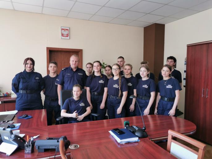 Młodzież została serdecznie przyjęta przez Komendanta Miejskiego Policji w Koninie, mł. insp. dr Mariusza Jaworskiego, który zaprosił ich do swojego gabinetu i opowiedział o swojej pracy. Na wstępie uczniowie zostali zapoznani z historią i strukturą organizacyjną Policji w Polsce, a także z codziennymi obowiązkami funkcjonariuszy. Następnie, w ramach drzwi otwartych Komendy, zorganizowano wizyty w wielu wydziałach, które miały na celu przybliżenie młodzieży specyfiki pracy w Policji. Uczniowie uczestniczyli w pokazach sprzętu policyjnego, w tym radiowozów, motocykli i specjalistycznego wyposażenia używanego podczas interwencji. Ponadto, mieli okazję zobaczyć pokaz broni, co wzbudziło ogromne zainteresowanie. Uczniowie mogli również porozmawiać z policjantem Wydziału Ruchu Drogowego, który opowiedział o zadaniach wykonywanych przez funkcjonariuszy tego wydziału.