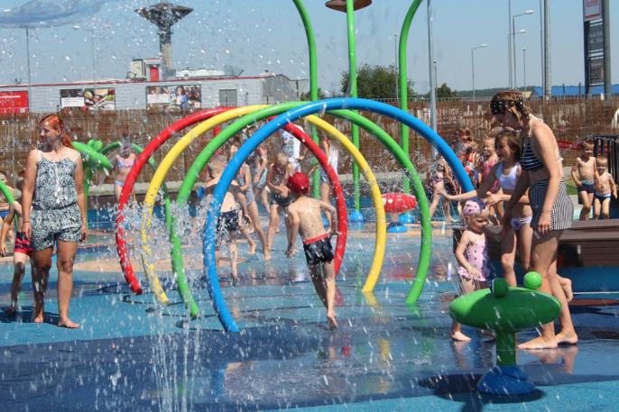 Budowa wodnego placu zabaw rozpoczęła się jesienią ubiegłego roku. W miejscu starego placu zabaw przy ul. Armii Krajowej 1 powstał nowoczesny i jedyny w rejonie wodny plac zabaw, o powierzchni 400 m2. Jest tutaj 38 kolorowych zabawek tryskających wodą oraz brodzik dla najmłodszych dzieci. Wybudowany został też parking dla 45 samochodów osobowych i 2 autobusów. Budowa kosztowała 2,8 mln zł.