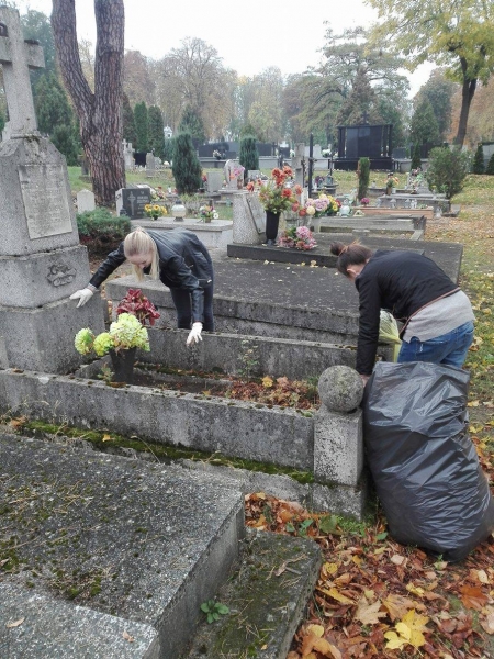 Słuchacze posprzątali teren pomiędzy grobami: zbierali liście, uprzątnęli zapomniane groby, zamietli ścieżki cmentarne. Była to wspaniała okazja, aby uczcić pamięć tych, którzy odeszli oraz pokazać, że ludzie potrafią z zadumą odwiedzić mogiły zmarłych.
