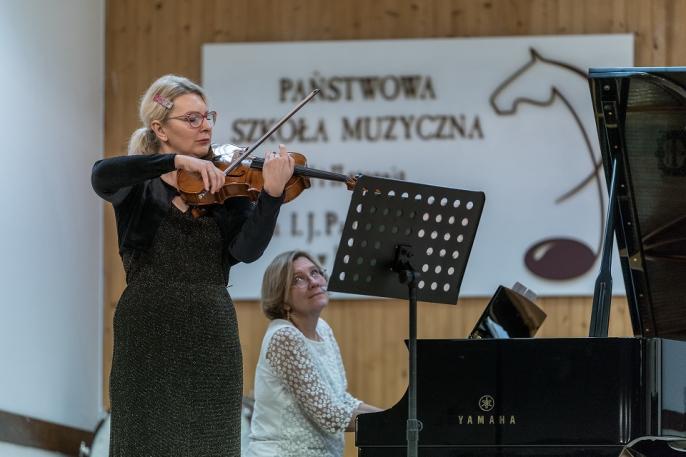 Program wieczornego koncertu kompozycjami Moniki Kędziory, Janusza Stalmierskiego. Andrzeja Koszewskiego, Magdaleny Cynk, Ewy Fabiańskiej-Jelińskiej i Katarzyny Danel wypełniły dwie znakomite instrumentalistki: Ewa Guzowska (koninianka z pochodzenia) – altówka i Maria Koszewska-Wajdzik – fortepian.