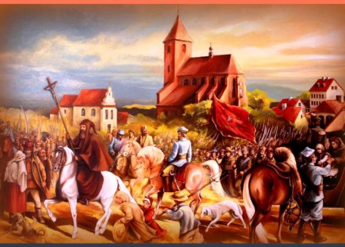 Obraz ( kopia obrazu Wojciecha Kossaka) ukazuje wyjście powstańców z Pyzdr. Na pierwszym planie powstańczy kapelan O. Maksymilian Tarejwo.