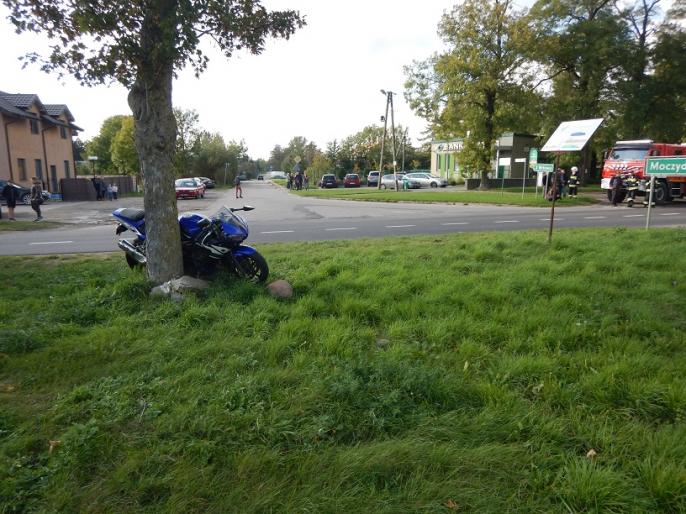 Na drodze powiatowej motocyklista wypadł z drogi i uderzył w przydrożne drzewo. Dyżurny do działań zadysponował strażaków z Jednostki Ratowniczo-Gaśniczej w Kole oraz Ochotniczej Straży Pożarnej z Dębów Szlacheckich. Działania straży pożarnej polegały na zabezpieczeniu miejsca zdarzenia oraz udzieleniu kwalifikowanej pierwszej pomocy motocykliście. Po przybyciu na miejsce zdarzenia Zespołu Ratownictwa Medycznego poszkodowany został przetransportowany do szpitala.
