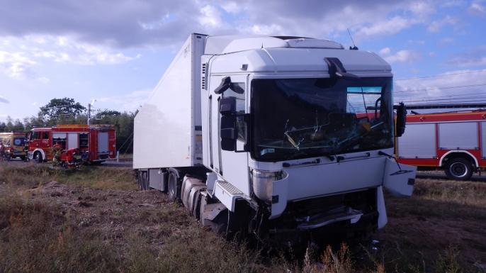 Stanowisko Kierowania Komendanta Powiatowego Państwowej Straży Pożarnej w Kole przyjęło zgłoszenie o wypadku drogowym samochodu osobowego z samochodem ciężarowym w miejscowości Stary Budzisław gm. Osiek Mały.
