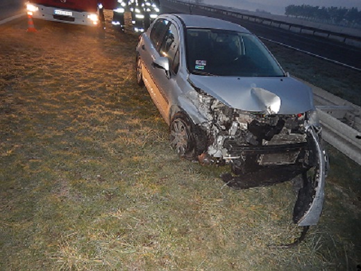 o godz. 6.16 na autostradzie A2 na 299 km w kierunku Poznania w miejscowości Cichmiana samochód osobowy Peugeot 207 uderzył w barierki. Do zdarzenia zadysponowany został jeden zastęp z JRG Koło oraz jeden zastęp z OSP Dąbie. Samochodem podróżował tylko kierowca, który opuścił pojazd przed przybyciem zastępów straży pożarnej. Działania zastępów straży pożarnej polegały na zabezpieczeniu miejsca zdarzenia, oraz udzieleniu kwalifikowanej pierwszej pomocy kierowcy pojazdu. W działaniach ratowniczych brało udział 12 ratowników. Łączny czas trwania akcji ratowniczej wyniósł: 1 godz. 51 minut. Dochodzenie w sprawie przyczyny wypadku prowadzi Policja.