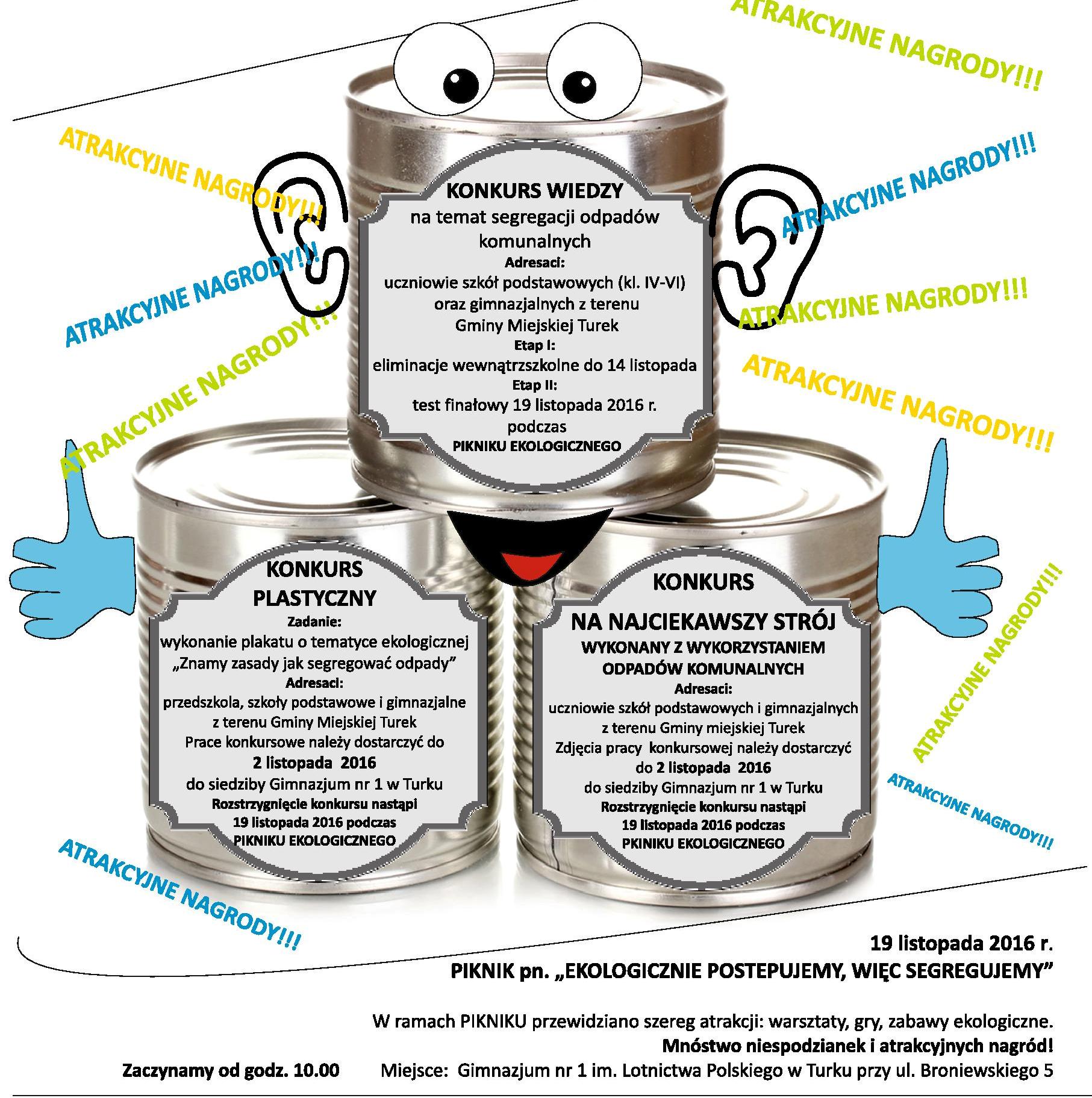 Już w najbliższą sobotę, 19 listopada 216 r., w Gimnazjum nr 1 w Turku odbywać się będzie piknik pod nazwą „Ekologicznie postępujemy, więc segregujemy”.
