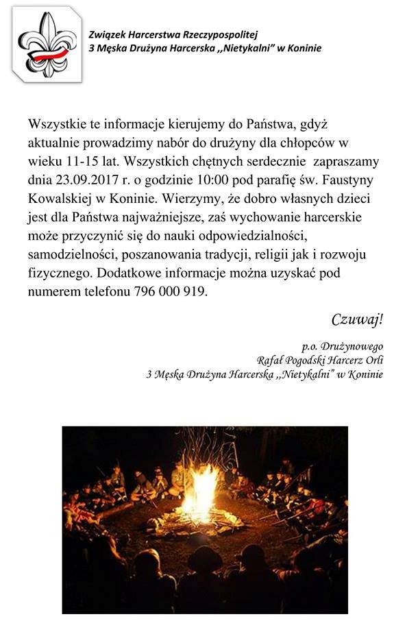 ZHR Konin AktualnościKonin 22/09/2017 Mniej niż 1 min. FacebookTwitterWhatsApp MASZ WAŻNĄ WIADOMOŚĆ? Prześlij do naszej redakcji zdjęcie, film, lub informację! +48 63 242 01 01 - Reklama - PROMOCJA Wydarzenia„Dzieciństwo bez przemocy” Konin włącza się w ogólnopolską kampanię.Redakcja LP - 1 dzień ago0KulturaStypendia Prezydenta Miasta Konina w dziedzinie kulturyRedakcja LP - 2 dni ago0WydarzeniaZACHWYTNIKI 2025 – Wielkopolska pełna inspiracji!Redakcja - 20/10/20250ZdrowieNowoczesna Klinika Neurologii ICZMP – „Pomagamy Jak Umiemy” RossmannRedakcja LP - 14/10/20250AktualnościROSSMANN „MOJA DROGERIA” – NOWY WYMIAR ZAKUPÓW I BLISKOŚCIRedakcja - 10/10/20250 Tagirocznice,monte cassino,harcerstwo PROMOCJA Wydarzenia„Dzieciństwo bez przemocy” Konin włącza się w ogólnopolską kampanię.Redakcja LP - 1 dzień ago0AktualnościROSSMANN „MOJA DROGERIA” – NOWY WYMIAR ZAKUPÓW I BLISKOŚCIRedakcja - 10/10/20250Stare MiastoHubertowski Piknik Myśliwski – tradycja i integracja w Starym MieścieRedakcja LP - 03/10/20250AktualnościNoc Zawodowców 2025 w Kole – młodzież odkrywała zawody przyszłościRedakcja LP - 06/10/20250AktualnościDo 2027 roku w Koninie stanie nowoczesna zajezdnia MZK!Redakcja LP - 16/09/20250 Szukaj Konin zachmurzenie umiarkowane enter location 9.4 ° C 9.4 ° 9.4 ° 78 % 11.2kmh 83 % czw. 9 ° pt. 11 ° sob. 14 ° niedz. 14 ° pon. 11 ° Sygnał24INFO Uwaga kierowcy! Zmiana organizacji ruchu w Russocicach 30/10/2025 IMGW ostrzega: silny wiatr nad regionem! 30/10/2025 Uwaga kierowcy! Zmiany w organizacji ruchu przy konińskich cmentarzach 30/10/2025 Konińska Policja apeluje: rozmawiajmy z dziećmi o konsekwencjach kradzieży 30/10/2025 Zmiana organizacji ruchu przy cmentarzu w Sompolnie – 1 listopada 29/10/2025 Poprzedni artykułWanda Gruszczyńska – globtroterka z pasjiNastępny artykułW Koninie, czyli nigdzie – Przyjazna instytucja Mogłeś przegapić Europejski Dzień Przywracania Czynności Serca w Koninie – policjanci wśród uczestników edukacyjnego wydarzenia Aktualności 30/10/2025 Nowa radna w Radzie Gminy Kazimierz Biskupi – Katarzyna Wiedera złożyła ślubowanie Kazimierz Biskupi 30/10/2025 Narodowe Święto Niepodległości w Koninie – wspólne świętowanie 107. rocznicy odzyskania wolności Aktualności 30/10/2025
