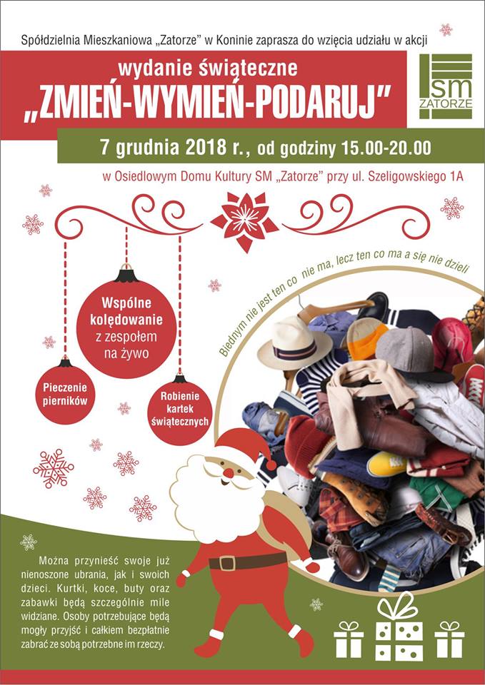 Zamienianka na Zatorzu AktualnościKonin 29/11/2018 Mniej niż 1 min. FacebookTwitterWhatsApp MASZ WAŻNĄ WIADOMOŚĆ? Prześlij do naszej redakcji zdjęcie, film, lub informację! +48 63 242 01 01 Zapraszam Wszystkich do wzięcia udziału w naszej akcji. Już 7 grudnia można podzielić się z potrzebującymi, oraz całkowicie bezpłatnie będzie można z wszystkiego skorzystać. W ten wspaniały świąteczny czas niech wszyscy będą szczęśliwi. - Reklama - PROMOCJA Wydarzenia„Dzieciństwo bez przemocy” Konin włącza się w ogólnopolską kampanię.Redakcja LP - 1 dzień ago0KulturaStypendia Prezydenta Miasta Konina w dziedzinie kulturyRedakcja LP - 3 dni ago0WydarzeniaZACHWYTNIKI 2025 – Wielkopolska pełna inspiracji!Redakcja - 20/10/20250ZdrowieNowoczesna Klinika Neurologii ICZMP – „Pomagamy Jak Umiemy” RossmannRedakcja LP - 14/10/20250AktualnościROSSMANN „MOJA DROGERIA” – NOWY WYMIAR ZAKUPÓW I BLISKOŚCIRedakcja - 10/10/20250 Tagiakcje charytatywne, PROMOCJA AktualnościNoc Zawodowców 2025 w Kole – młodzież odkrywała zawody przyszłościRedakcja LP - 06/10/20250KulturaStypendia Prezydenta Miasta Konina w dziedzinie kulturyRedakcja LP - 3 dni ago0AktualnościDo 2027 roku w Koninie stanie nowoczesna zajezdnia MZK!Redakcja LP - 16/09/20250KoninLider w dostawach przesyłek, InPost szuka nowych Kurierów i Przewoźników w Koninie!Redakcja LP - 13/08/20250AktualnościROSSMANN „MOJA DROGERIA” – NOWY WYMIAR ZAKUPÓW I BLISKOŚCIRedakcja - 10/10/20250 Szukaj Konin zachmurzenie małe enter location 8.6 ° C 8.6 ° 8.6 ° 79 % 9.7kmh 50 % czw. 8 ° pt. 12 ° sob. 14 ° niedz. 13 ° pon. 12 ° Sygnał24INFO Uwaga kierowcy! Zmiana organizacji ruchu w Russocicach 30/10/2025 IMGW ostrzega: silny wiatr nad regionem! 30/10/2025 Uwaga kierowcy! Zmiany w organizacji ruchu przy konińskich cmentarzach 30/10/2025 Konińska Policja apeluje: rozmawiajmy z dziećmi o konsekwencjach kradzieży 30/10/2025 Zmiana organizacji ruchu przy cmentarzu w Sompolnie – 1 listopada 29/10/2025 Poprzedni artykułFoto – pstryk … – A Lwów już pod śniegiem…Następny artykułMural w kleczewskim Adamowie Mogłeś przegapić Złoty Medal za Długoletnią Służbę dla nauczycielki III LO w Koninie Aktualności 30/10/2025 W „Trzecim” ruszają klasy akademickie Aktualności 30/10/2025 Europejski Dzień Przywracania Czynności Serca w Koninie – policjanci wśród uczestników edukacyjnego wydarzenia Aktualności 30/10/2025