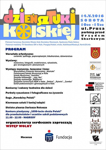 W sobotę 14 maja br. odbędzie się kolejny już raz Dzień Sztuki Kolskiej. Impreza dobrze przyjmowana przez kolską społeczność promuje rodzimych artystów, ich twórczość i dość niezwykły czasami, dorobek artystyczny.