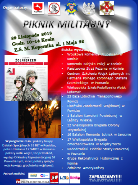 Zapraszamy na Piknik Militarny AktualnościKonin 22/11/2018 Mniej niż 1 min. FacebookTwitterWhatsApp MASZ WAŻNĄ WIADOMOŚĆ? Prześlij do naszej redakcji zdjęcie, film, lub informację! +48 63 242 01 01 - Reklama - PROMOCJA Wydarzenia„Dzieciństwo bez przemocy” Konin włącza się w ogólnopolską kampanię.Redakcja LP - 1 dzień ago0KulturaStypendia Prezydenta Miasta Konina w dziedzinie kulturyRedakcja LP - 2 dni ago0WydarzeniaZACHWYTNIKI 2025 – Wielkopolska pełna inspiracji!Redakcja - 20/10/20250ZdrowieNowoczesna Klinika Neurologii ICZMP – „Pomagamy Jak Umiemy” RossmannRedakcja LP - 14/10/20250AktualnościROSSMANN „MOJA DROGERIA” – NOWY WYMIAR ZAKUPÓW I BLISKOŚCIRedakcja - 10/10/20250 Tagifestyn,piknik,zawody PROMOCJA AktualnościNoc Zawodowców 2025 w Kole – młodzież odkrywała zawody przyszłościRedakcja LP - 06/10/20250AktualnościDo 2027 roku w Koninie stanie nowoczesna zajezdnia MZK!Redakcja LP - 16/09/20250ZdrowieNowoczesna Klinika Neurologii ICZMP – „Pomagamy Jak Umiemy” RossmannRedakcja LP - 14/10/20250KoninLider w dostawach przesyłek, InPost szuka nowych Kurierów i Przewoźników w Koninie!Redakcja LP - 13/08/20250AktualnościROSSMANN „MOJA DROGERIA” – NOWY WYMIAR ZAKUPÓW I BLISKOŚCIRedakcja - 10/10/20250 Szukaj Konin zachmurzenie umiarkowane enter location 9.4 ° C 9.4 ° 9.4 ° 78 % 11.2kmh 83 % czw. 9 ° pt. 11 ° sob. 14 ° niedz. 14 ° pon. 11 ° Sygnał24INFO Uwaga kierowcy! Zmiana organizacji ruchu w Russocicach 30/10/2025 IMGW ostrzega: silny wiatr nad regionem! 30/10/2025 Uwaga kierowcy! Zmiany w organizacji ruchu przy konińskich cmentarzach 30/10/2025 Konińska Policja apeluje: rozmawiajmy z dziećmi o konsekwencjach kradzieży 30/10/2025 Zmiana organizacji ruchu przy cmentarzu w Sompolnie – 1 listopada 29/10/2025 Poprzedni artykułSiłownia i plac zabaw w Bożatkach i Osieczy DrugiejNastępny artykułNowe drogi w gminie Strzałkowo Mogłeś przegapić Europejski Dzień Przywracania Czynności Serca w Koninie – policjanci wśród uczestników edukacyjnego wydarzenia Aktualności 30/10/2025 Nowa radna w Radzie Gminy Kazimierz Biskupi – Katarzyna Wiedera złożyła ślubowanie Kazimierz Biskupi 30/10/2025 Narodowe Święto Niepodległości w Koninie – wspólne świętowanie 107. rocznicy odzyskania wolności Aktualności 30/10/2025