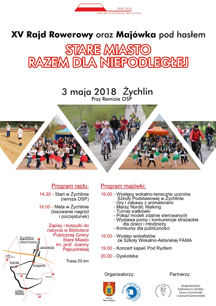 Gmina Stare Miasto i Biblioteka Publiczna zapraszają na coroczny Rajd Rowerowy, który odbędzie się w czwartek 3 maja. Zbiórka zaplanowana jest o godzinie 14:15, a początek Rajdu piętnaście minut później.