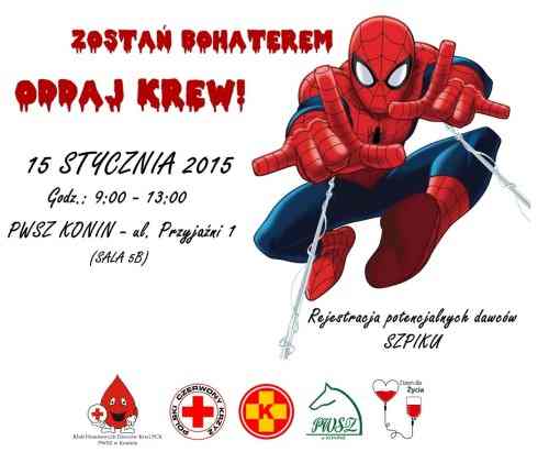 Akcja honorowego krwiodawstwa „Zostań bohaterem – oddaj krew!” rozpoczęła się dziś o 10.00 i potrwa do 13:00. Krew oddać można w sali 5B budynku konińskiej PWSZ przy ul. Przyjaźni.