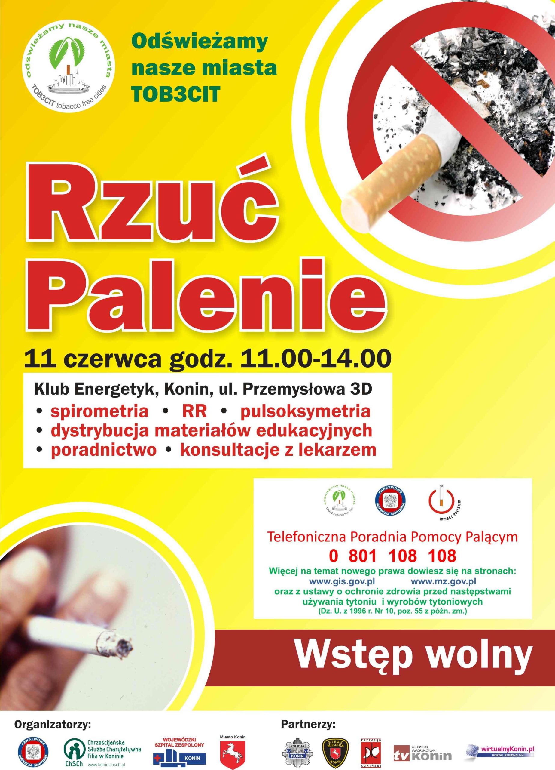 Do zerwania z nałogiem niktotynowym będą namawiać wszystkich palaczy 11 czerwca organizatorzy akcji „Rzuć Palenie”, która odbędzie się w Klubie Energetyk w Koninie między 11:00 a 14:00.