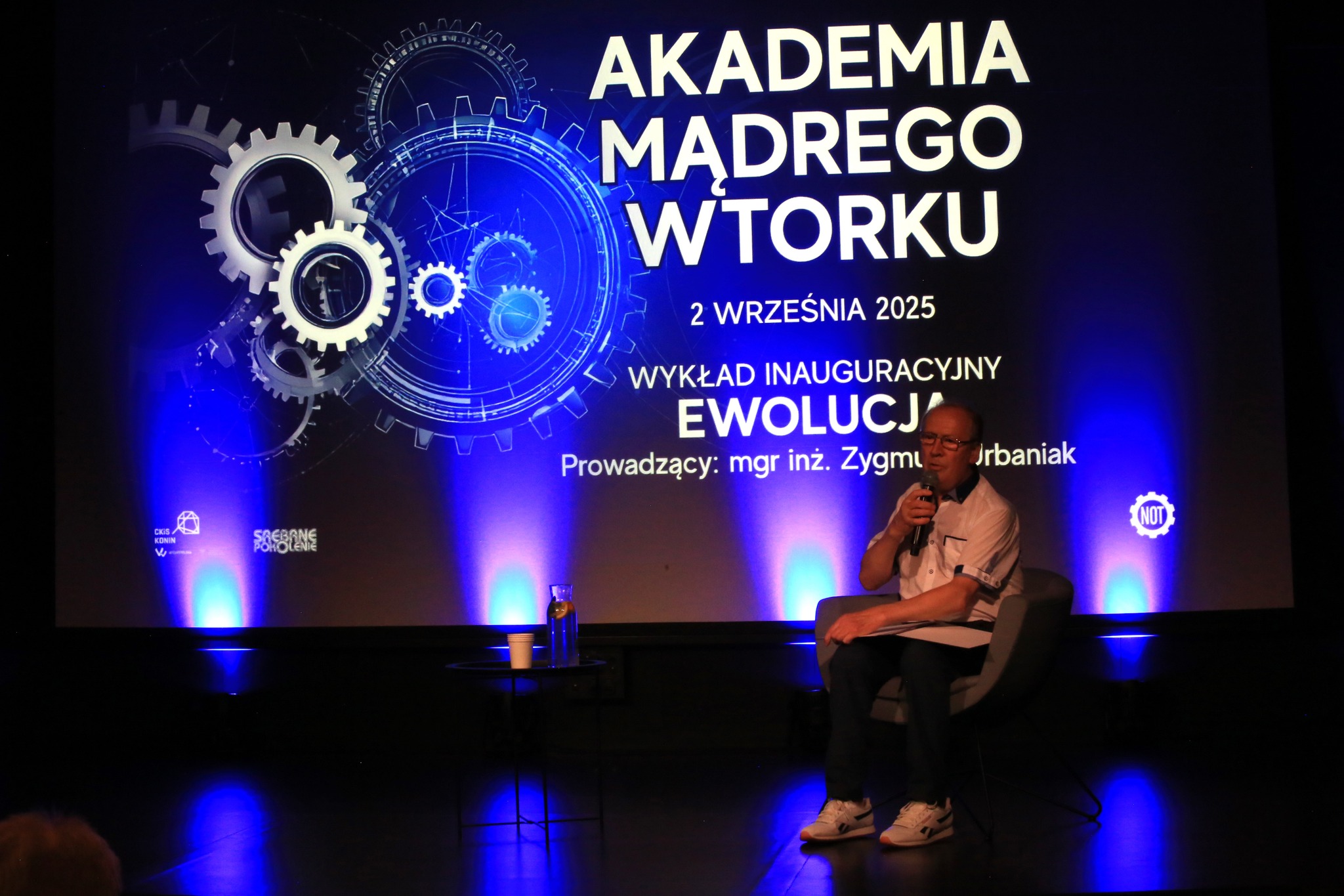 Pierwsze spotkanie, zatytułowane „Ewolucja”, poprowadził mgr inż. Zygmunt Urbaniak – ekspert NOT i popularyzator nauki. Uczestnicy mieli okazję poznać temat szeroko – od biologii i historii myśli naukowej, po współczesne rozważania dotyczące technologii i kultury.