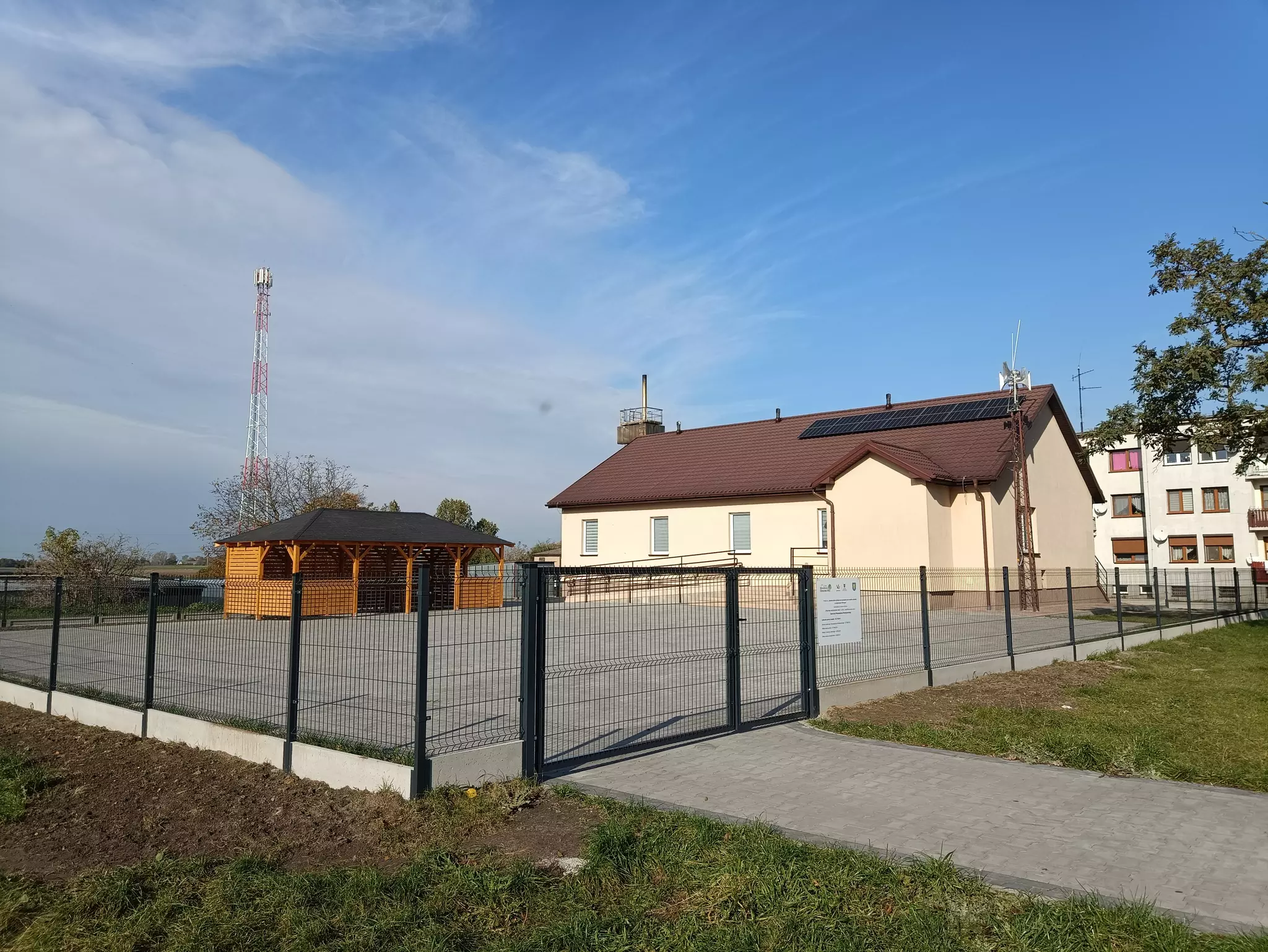 Dzięki inwestycji przy świetlicy wiejskiej powstała funkcjonalna altana grillowa, która posłuży jako miejsce spotkań, integracji i wspólnego spędzania czasu. Teren został także ogrodzony, co poprawi bezpieczeństwo i estetykę otoczenia obiektu.