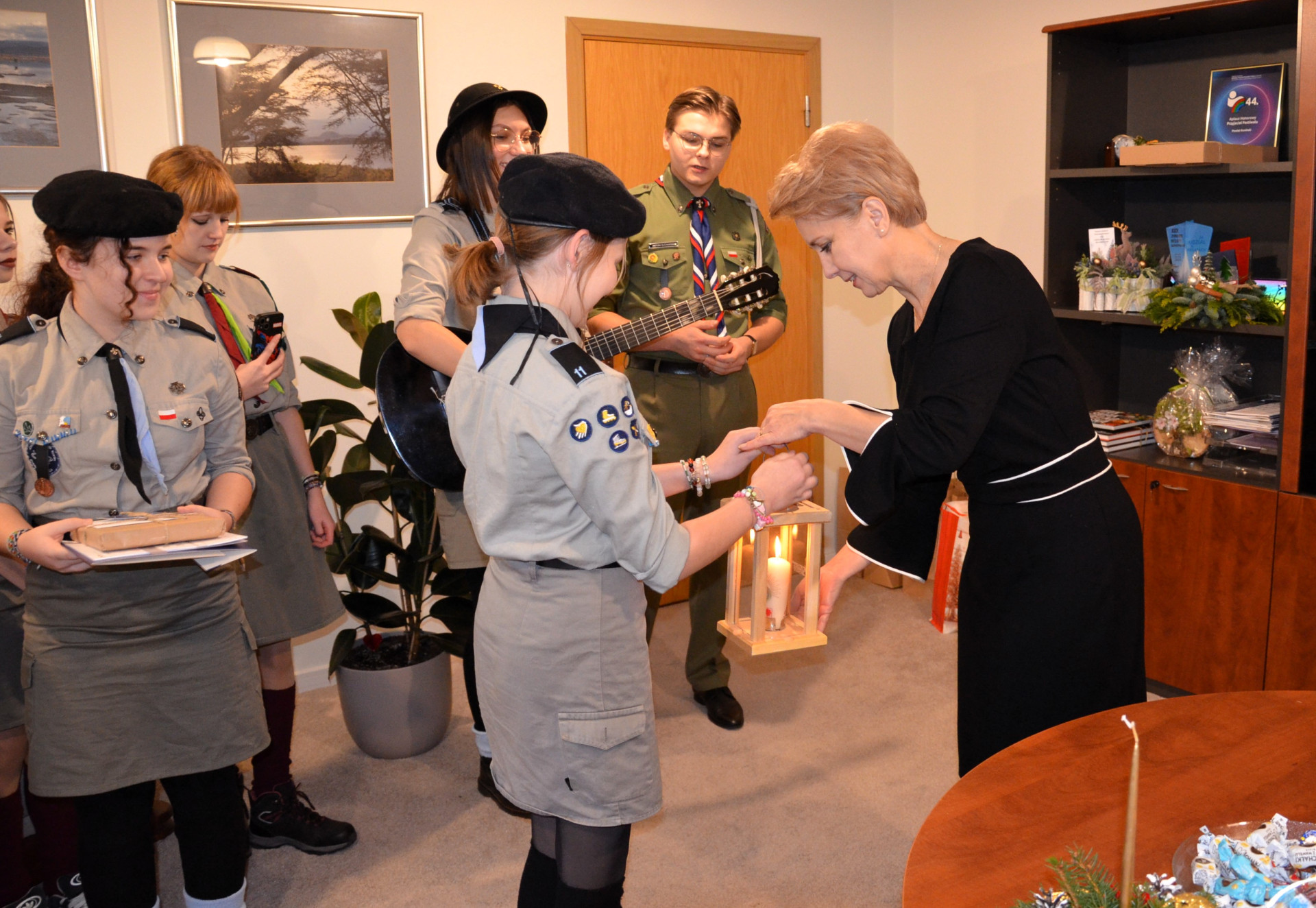 19 grudnia w Starostwie Powiatowym w Koninie odbyło się przekazanie Betlejemskiego Światła Pokoju. Lampion symbolizujący radość, braterstwo, pokój i wspólnotę odebrała starosta Katarzyna Fryza od konińskich harcerzy.