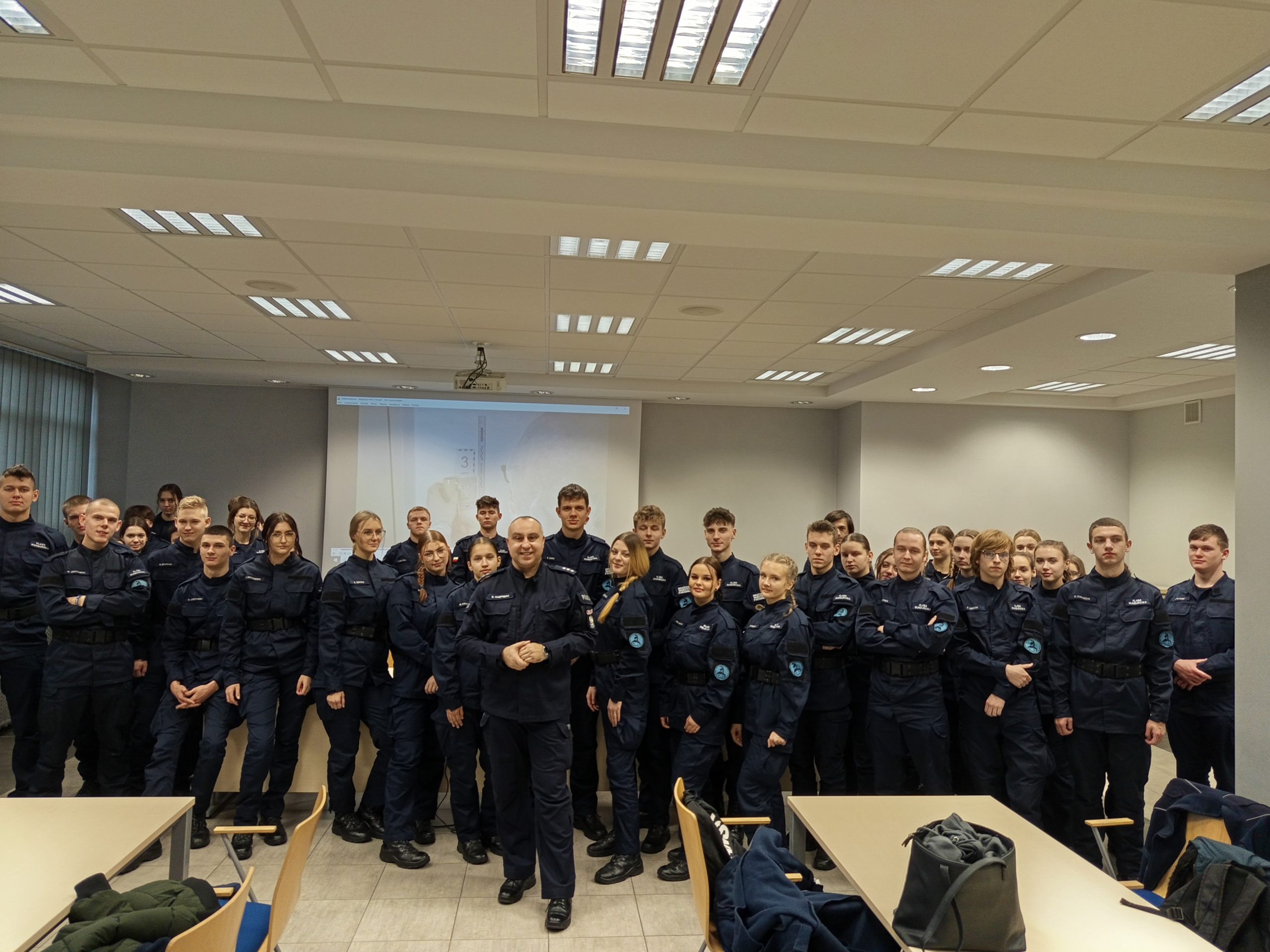 Podczas wykładu online, który odbył się 12 grudnia, kom. Kasprzak omówił szczegółowy proces dochodzeniowo-śledczy, podkreślając kluczowe aspekty zbierania materiału dowodowego i procedurę przesłuchania świadków. Uczniowie zapoznali się także z filmem ilustrującym formy i metody przesłuchania.