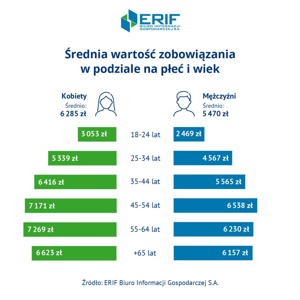 Choć kobiety w Polsce stanowią mniejszą część wszystkich dłużników, statystyki pokazują, że średnia wartość ich zobowiązań finansowych jest wyższa niż w przypadku mężczyzn. Z danych ERIF Biura Informacji Gospodarczej wynika, że w ciągu ostatniego roku przeciętne zadłużenie kobiet wzrosło o około 4 proc., osiągając poziom blisko 6,3 tys. zł.
