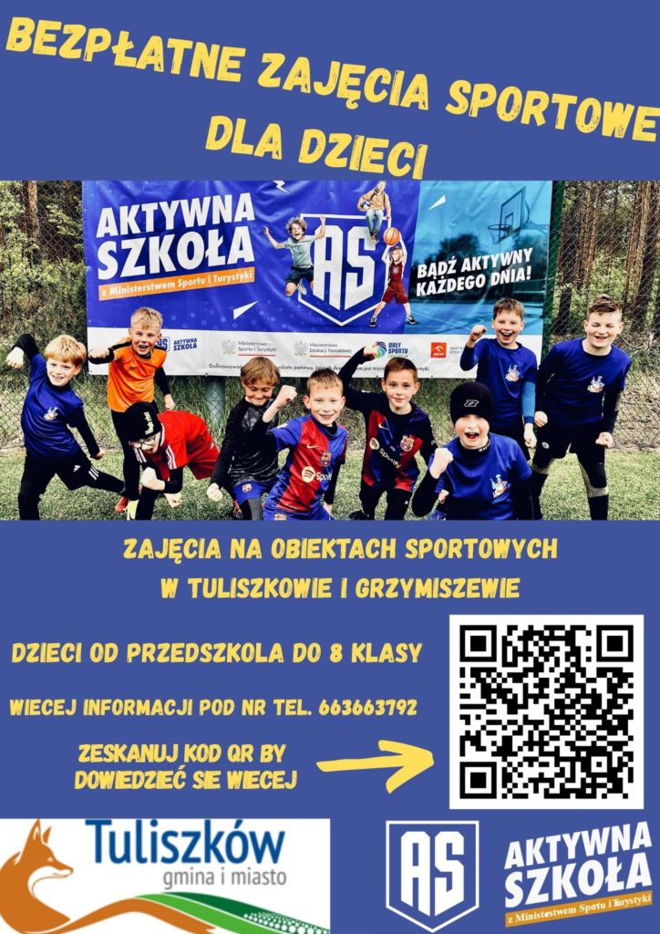Gmina i Miasto Tuliszków zaprasza dzieci, młodzież oraz dorosłych do udziału w programie Aktywny As. To darmowe zajęcia sportowe, które odbywają się do końca listopada na obiektach sportowych w Tuliszkowie i Grzymiszewie.