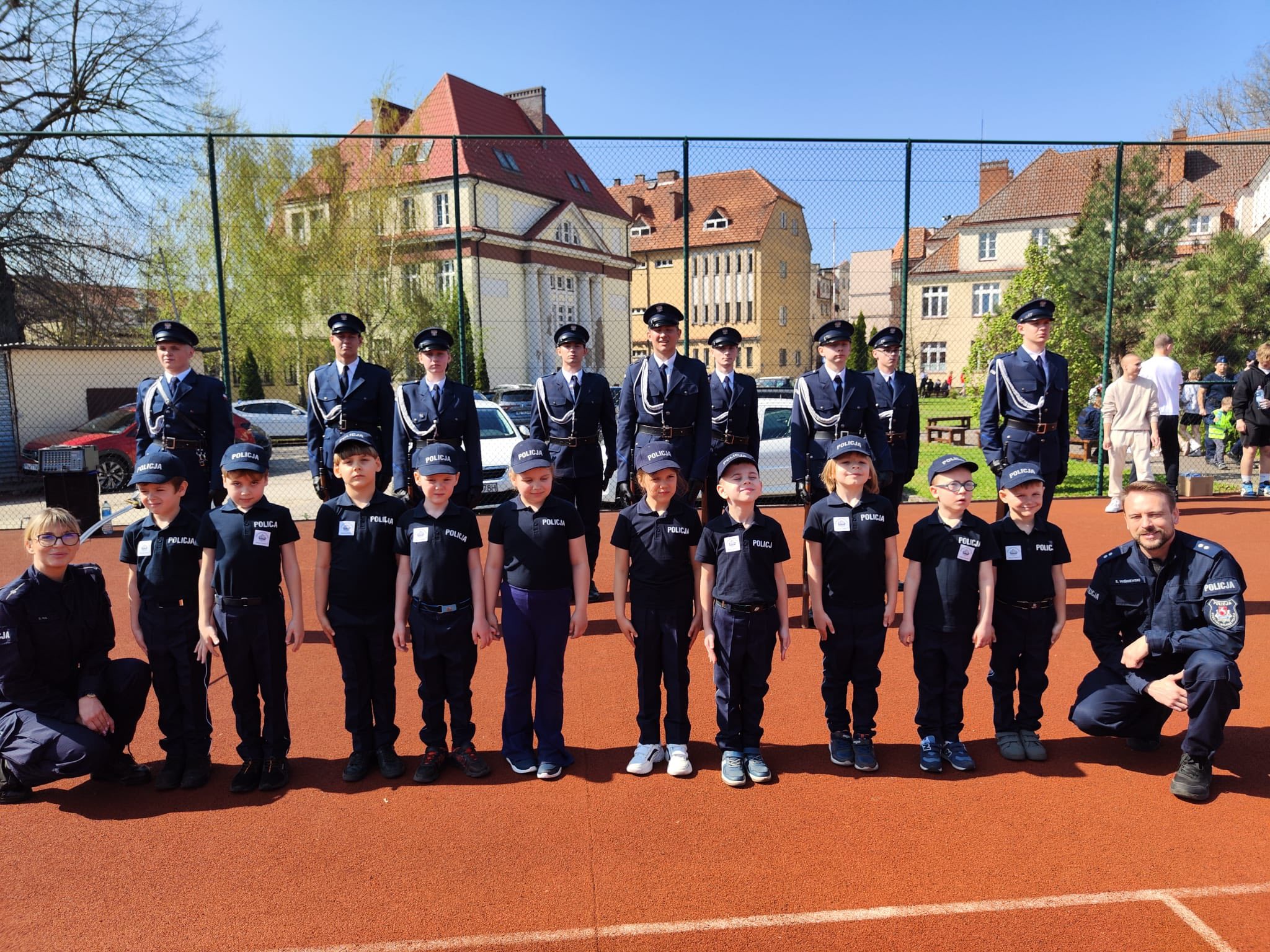Dzieci, ubrane w stroje policyjne, z entuzjazmem uczestniczyły w zajęciach z musztry, prowadzonych przez uczniów szkoły. Było to połączenie zabawy i edukacji, które dostarczyło najmłodszym wielu pozytywnych emocji i nowych doświadczeń.