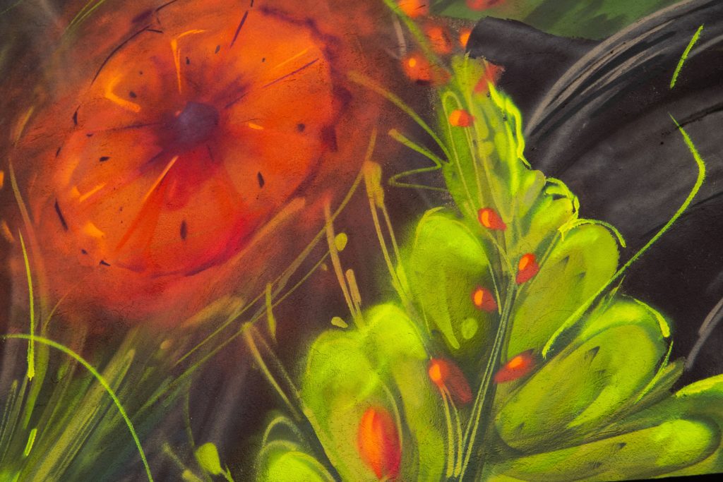 Grafika została wykonana specjalnymi farbami antysmogowymi, neutralizującymi tlenki azotu i inne szkodliwe zanieczyszczenia powstające m.in. w wyniku ruchu drogowego. Dzięki temu sztuka zyskuje zupełnie nowy wymiar – nie tylko dekoracyjny, ale także praktyczny i prozdrowotny.