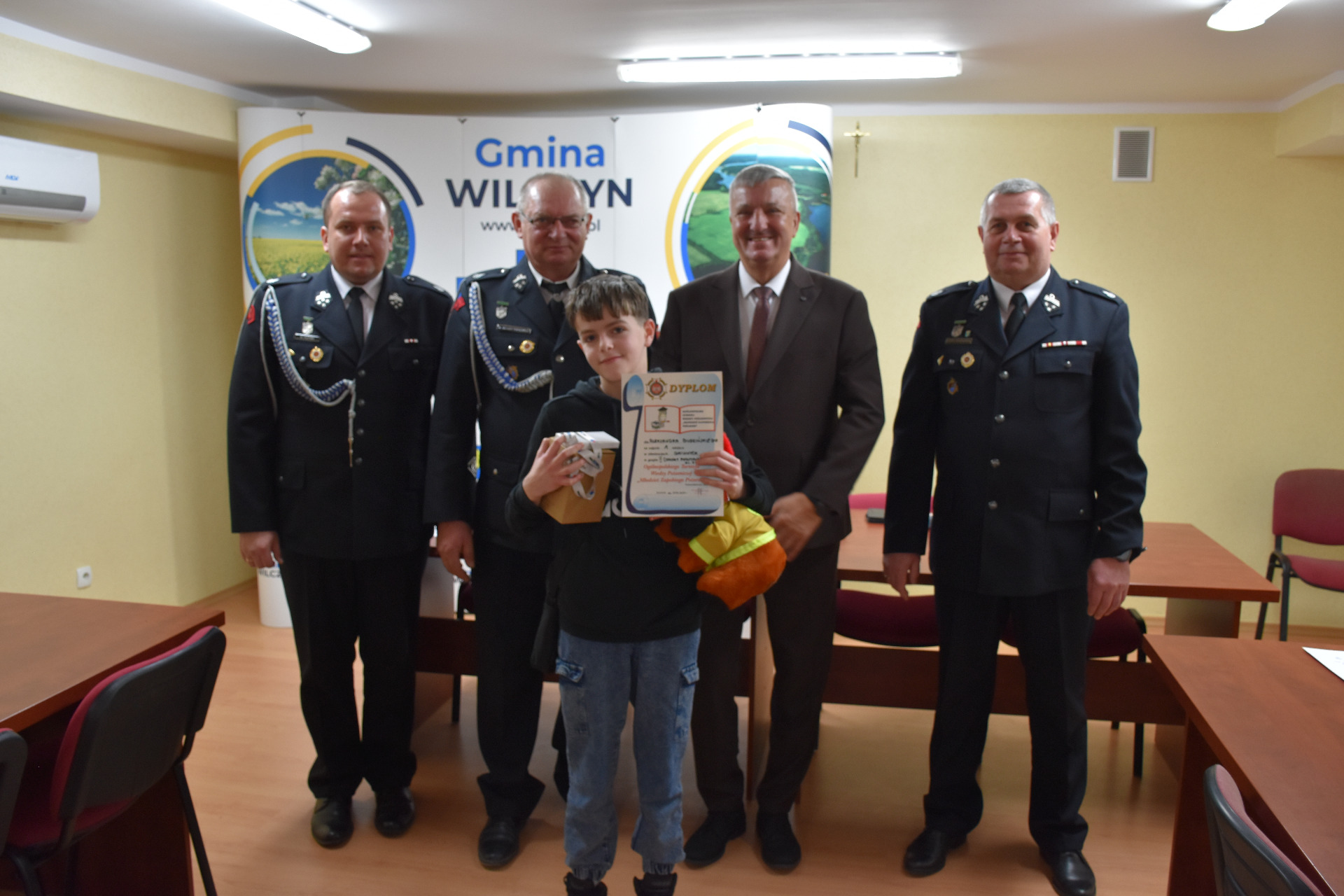 Na zakończenie konkursu Wójt Gminy Wilczyn wraz z Prezesem ZOG ZOSP RP oraz pozostałymi członkami komisji konkursowej wręczyli nagrody rzeczowe oraz dyplomy dla najlepszych uczestników w każdej z grup wiekowych, a także dyplomy za udział dla pozostałych uczestników. Opiekunowie dzieci otrzymali okolicznościowe podziękowania za wsparcie swoich podopiecznych w przygotowaniach do konkursu.