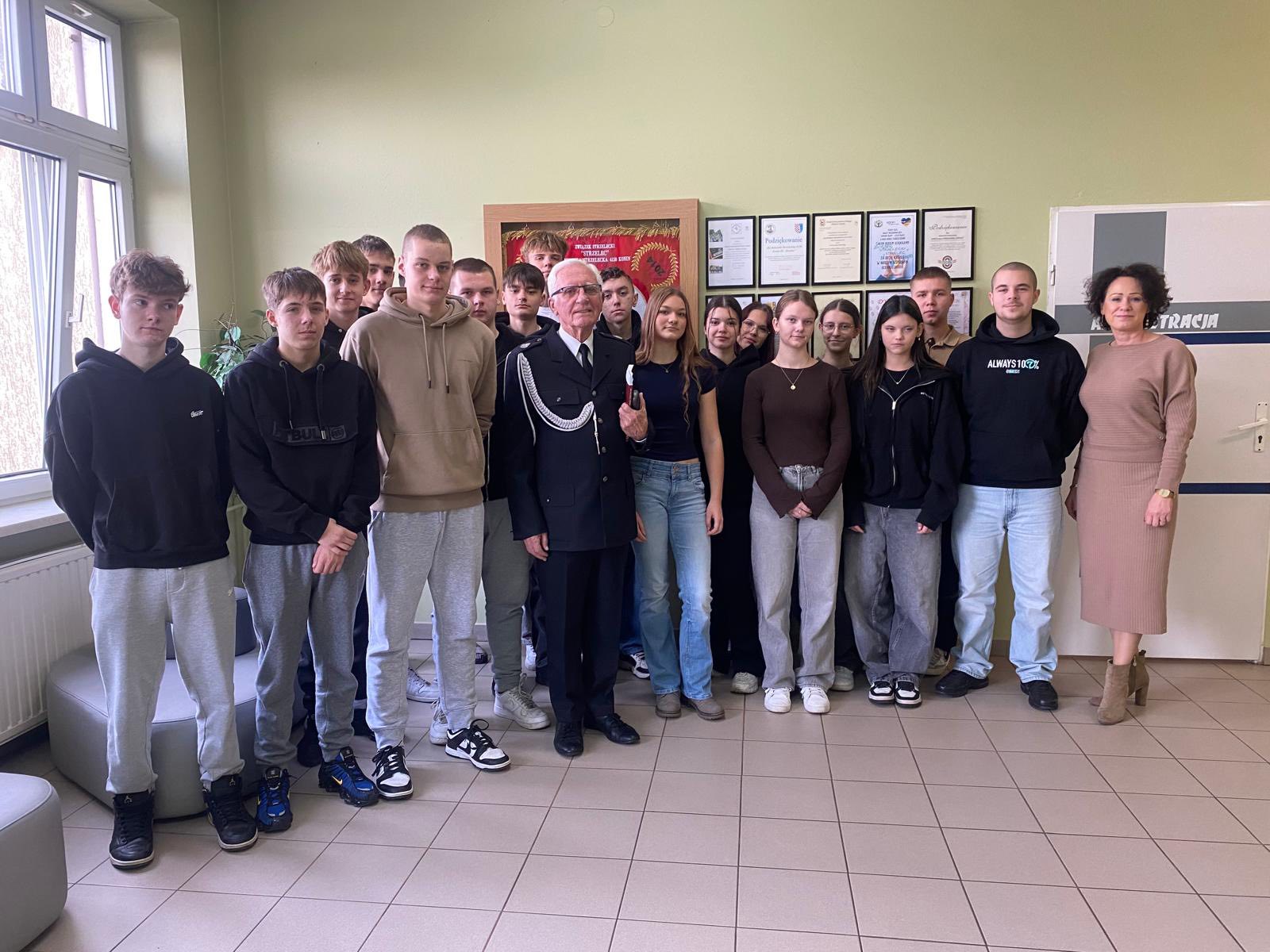Lekcja była również okazją do podkreślenia współpracy szkoły z OSP Starówka, dzięki której uczniowie zdobywają wiedzę i doświadczenia istotne dla przyszłej służby. Społeczność klasy strażackiej podziękowała Ryszardowi Sławińskiemu za przekazane informacje oraz Tomaszowi Rachwałowi, prezesowi OSP Konin Starówka, za wsparcie działań edukacyjnych.