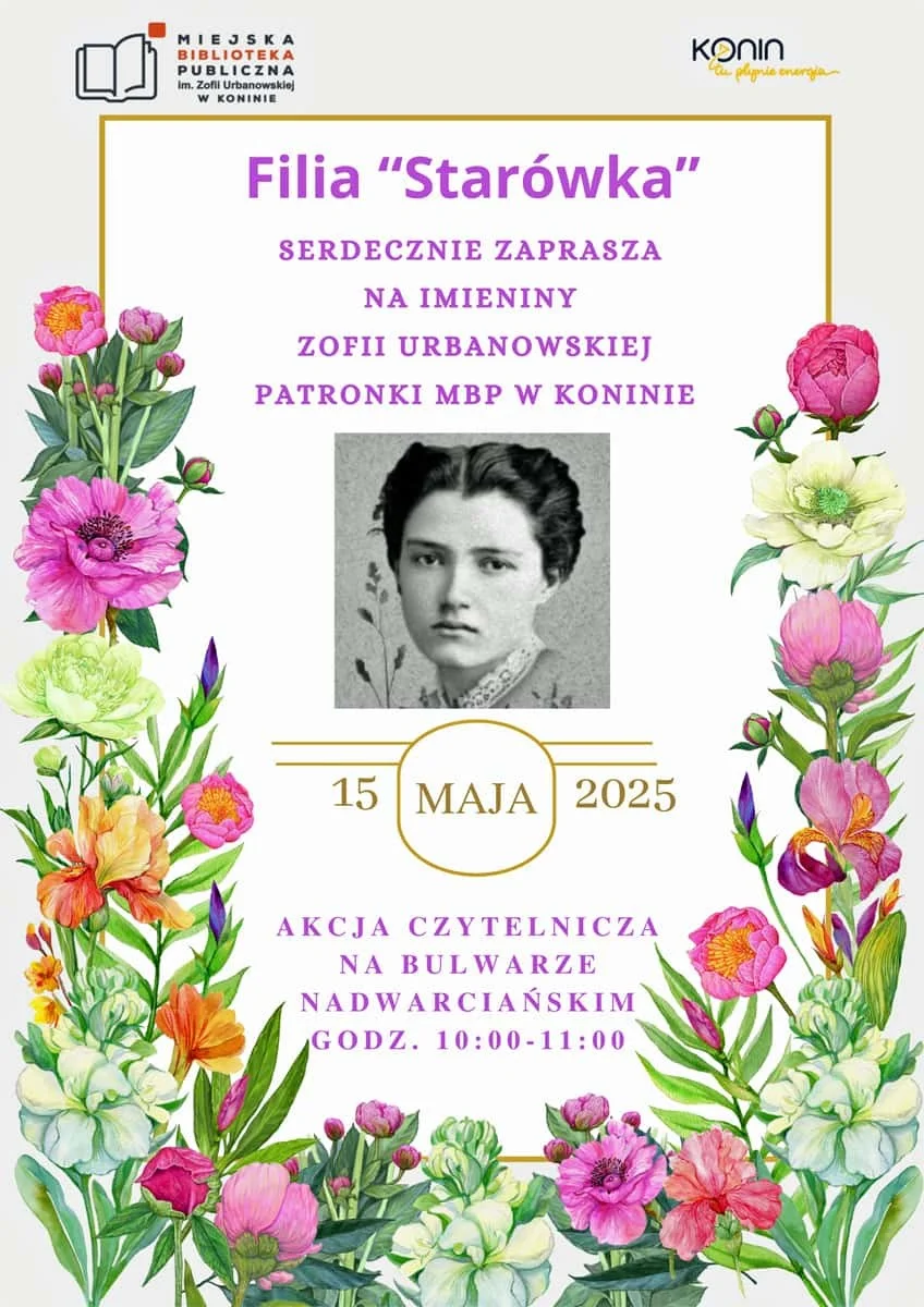 Miejska Biblioteka Publiczna im. Zofii Urbanowskiej w Koninie, Filia „Starówka”, zaprasza mieszkańców na wyjątkowe wydarzenie poświęcone swojej patronce. W czwartek, 15 maja 2025 roku, o godzinie 10:00 na Bulwarze Nadwarciańskim odbędzie się akcja czytelnicza z okazji imienin Zofii Urbanowskiej.