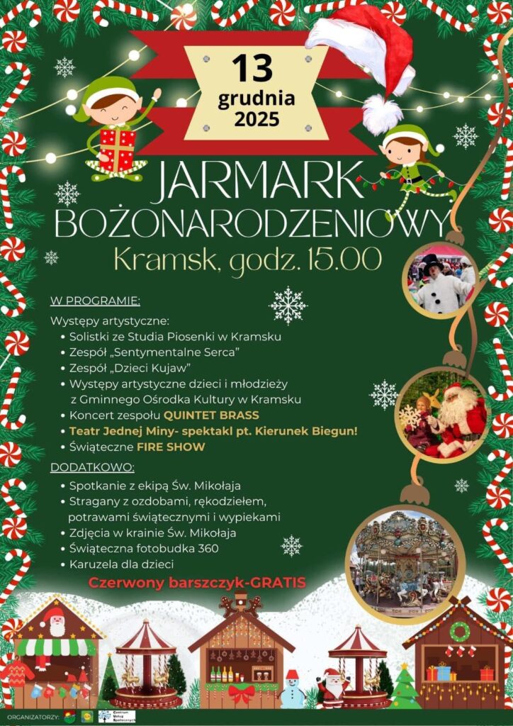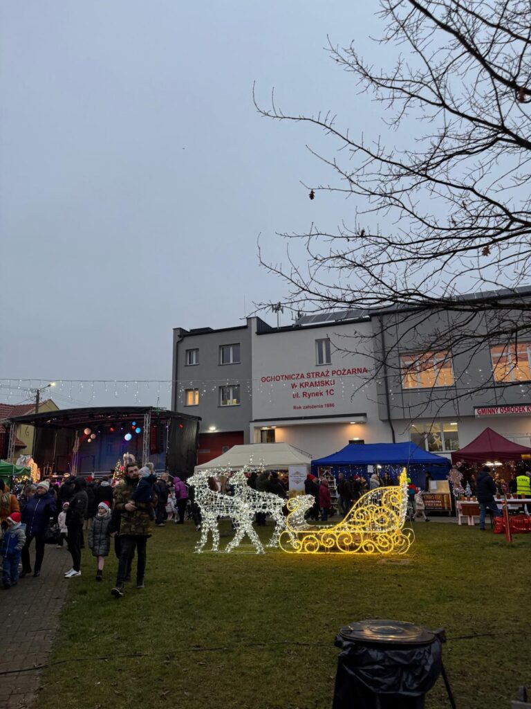 Od godziny 15.00 w Kramsku trwa Jarmark Bożonarodzeniowy, który tradycyjnie odbywa się na placu przed Gminnym Ośrodkiem Kultury. Wydarzenie przyciąga mieszkańców gminy oraz okolic, oferując bogaty program artystyczny, kulinarny i rozrywkowy, przygotowany z myślą o całych rodzinach.