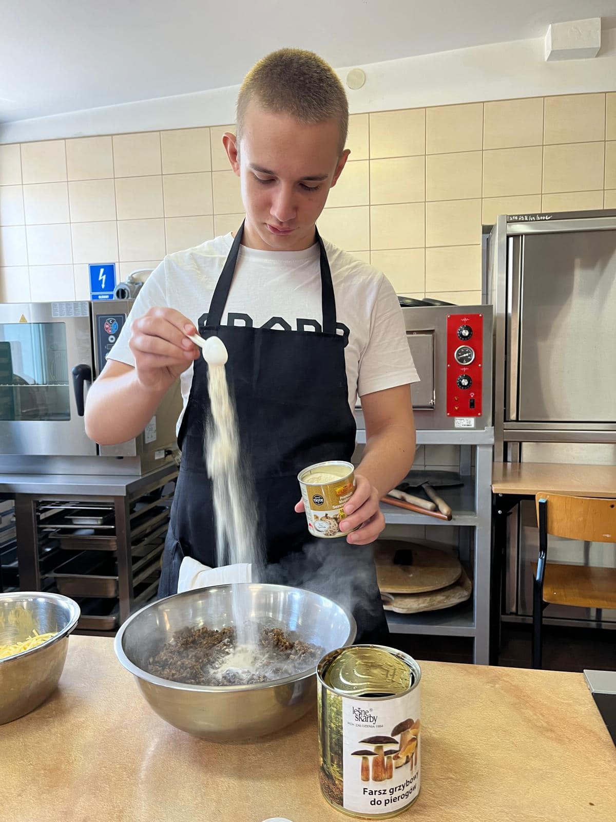 Jesień to nie tylko czas kolorowych liści, ale także sezon na grzyby. Uczniowie klasy pierwszej o profilu kucharskim z Zespołu Szkół Budownictwa i Kształcenia Zawodowego w Koninie postanowili połączyć jesienne inspiracje z nauką gotowania. Zainspirowani przepisami znanych szefów kuchni, przygotowali naleśniki z farszem grzybowym a’la Królikowski – danie, które zachwyciło smakiem i aromatem.