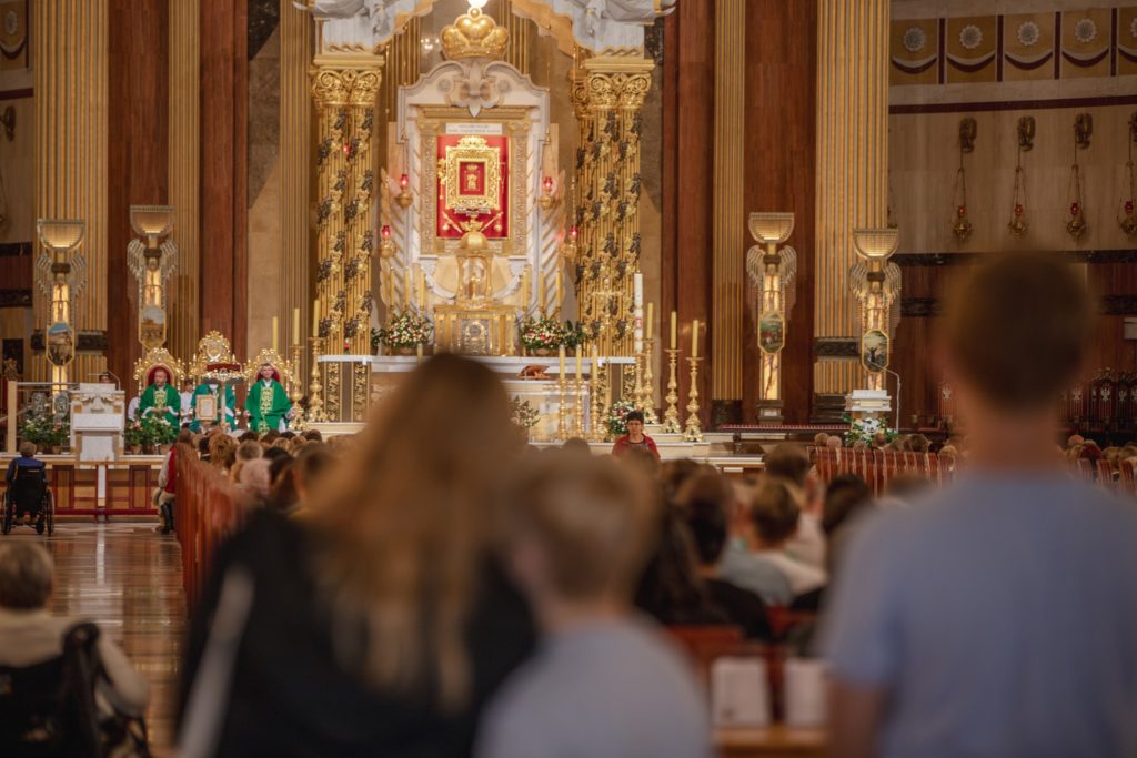 O godzinie 12.00 Bazylika Licheńska wypełniła się po brzegi rodzinami wielodzietnymi i wielopokoleniowymi. Liturgii przewodniczył kustosz sanktuarium, ks. Sławomir Homoncik MIC. – Dzisiaj rano uświadomiłem sobie, że muszę przywitać pewną szczególną rodzinę. To ogromna rodzina. Bardzo wielodzietna. To rodzina dzieci Bożych – powiedział na rozpoczęcie mszy świętej.
