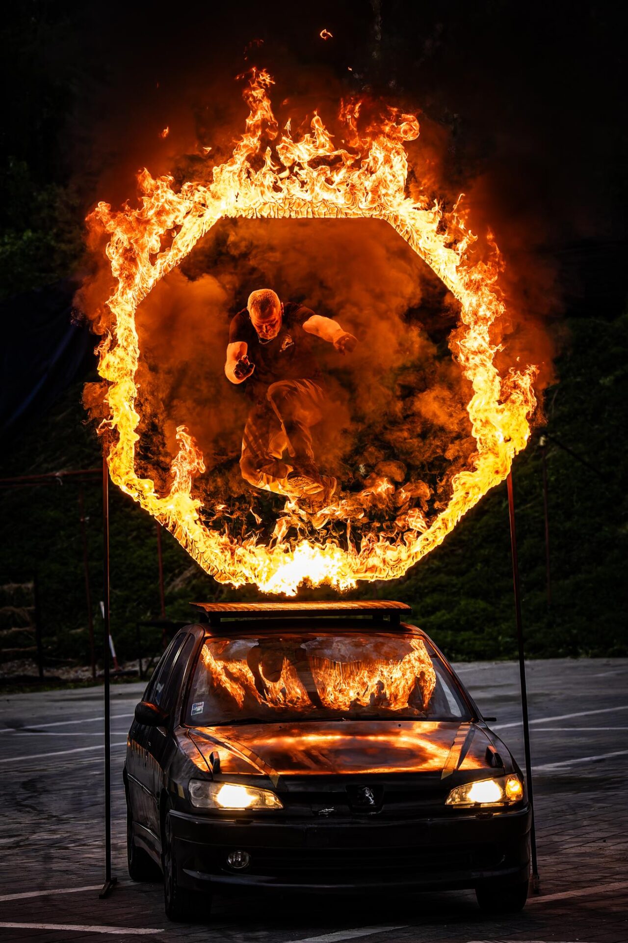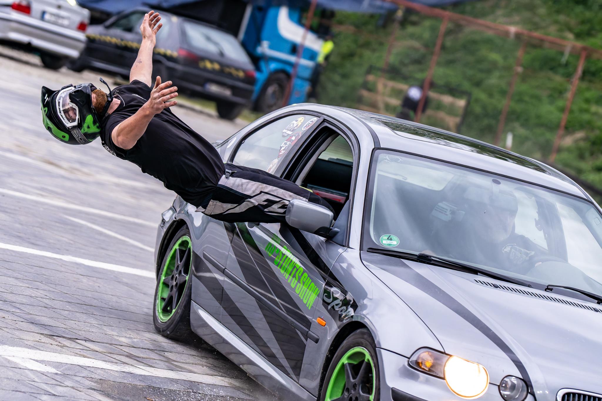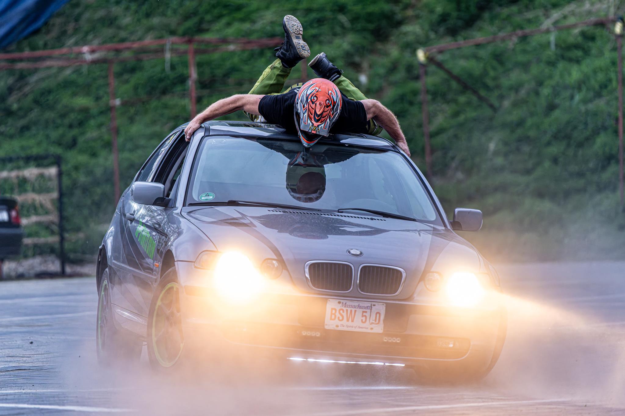 • przejazdy przez ogień z człowiekiem na masce,
