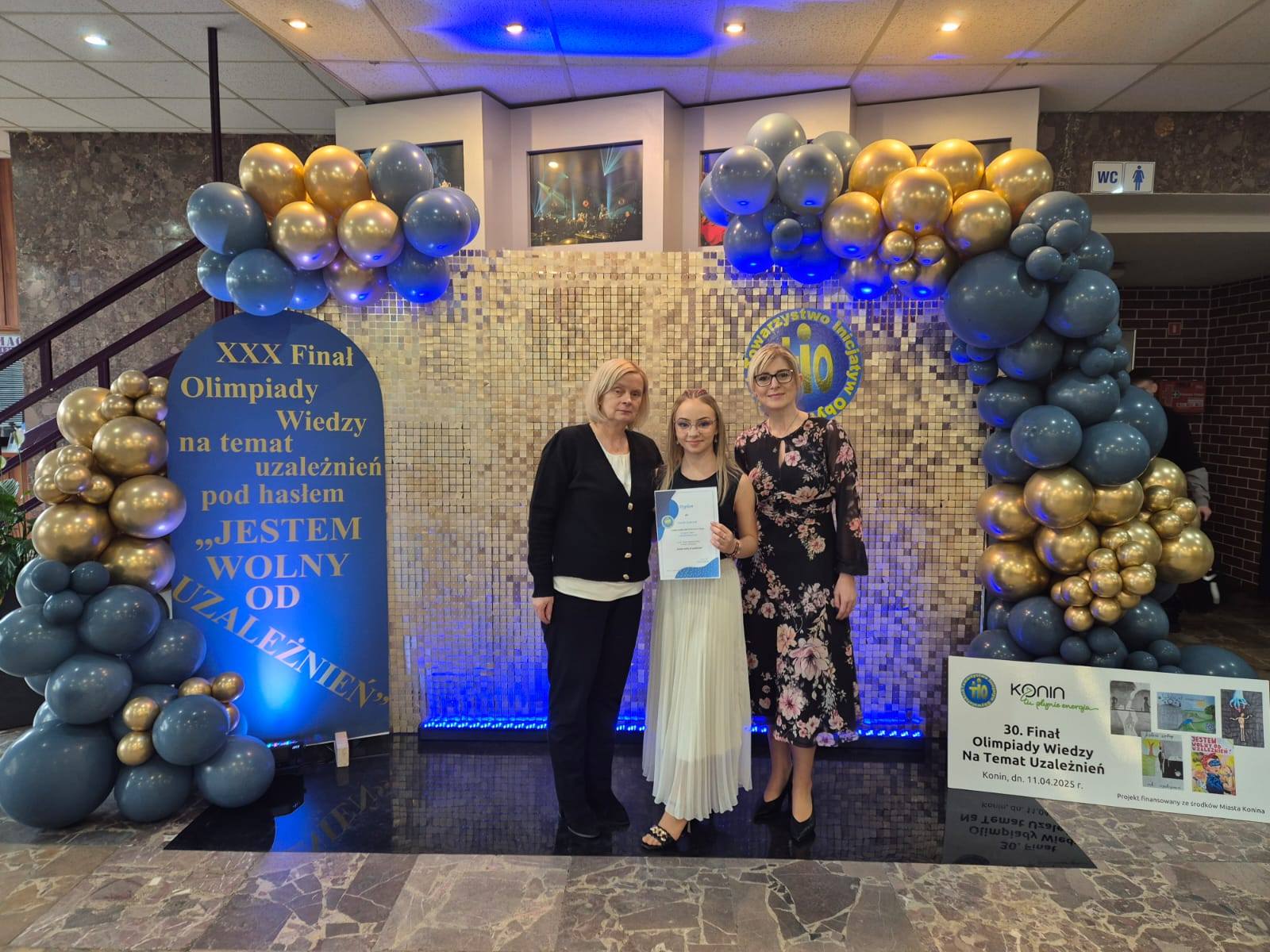 11 kwietnia br. w Konińskim Domu Kultury odbył się XXX finał Miejskiej Olimpiady wiedzy na temat uzależnień, zorganizowanej przez Towarzystwo Inicjatyw Obywatelskich. Wśród laureatów znalazła się Klaudia Szymczak, uczennica klasy 5TP Zespołu Szkół Technicznych w Koninie, która zajęła 1. miejsce w konkursie plastycznym. Klaudia stworzyła najlepszy plakat pt. „Jestem wolny od uzależnień”, za co otrzymała atrakcyjną nagrodę – zegarek smartwatch.