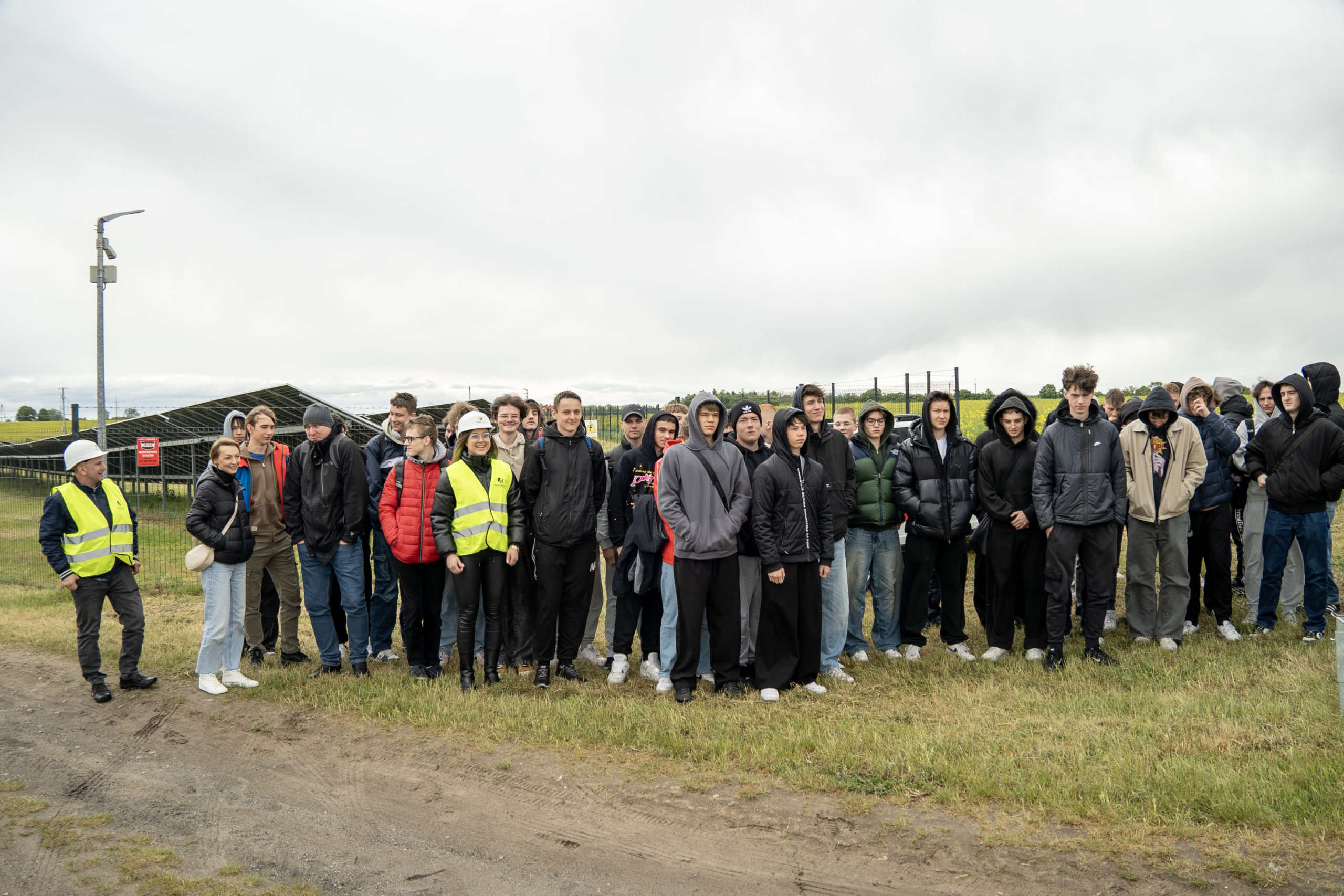 Pod opieką Nikoli Matysiak oraz Piotra Szczepankiewicza, młodzież miała okazję poznać „od kuchni” funkcjonowanie nowoczesnej farmy PV. Zwiedzający zapoznali się z technologią paneli PV, systemami przyłączeniowymi oraz sposobami zarządzania produkcją energii.