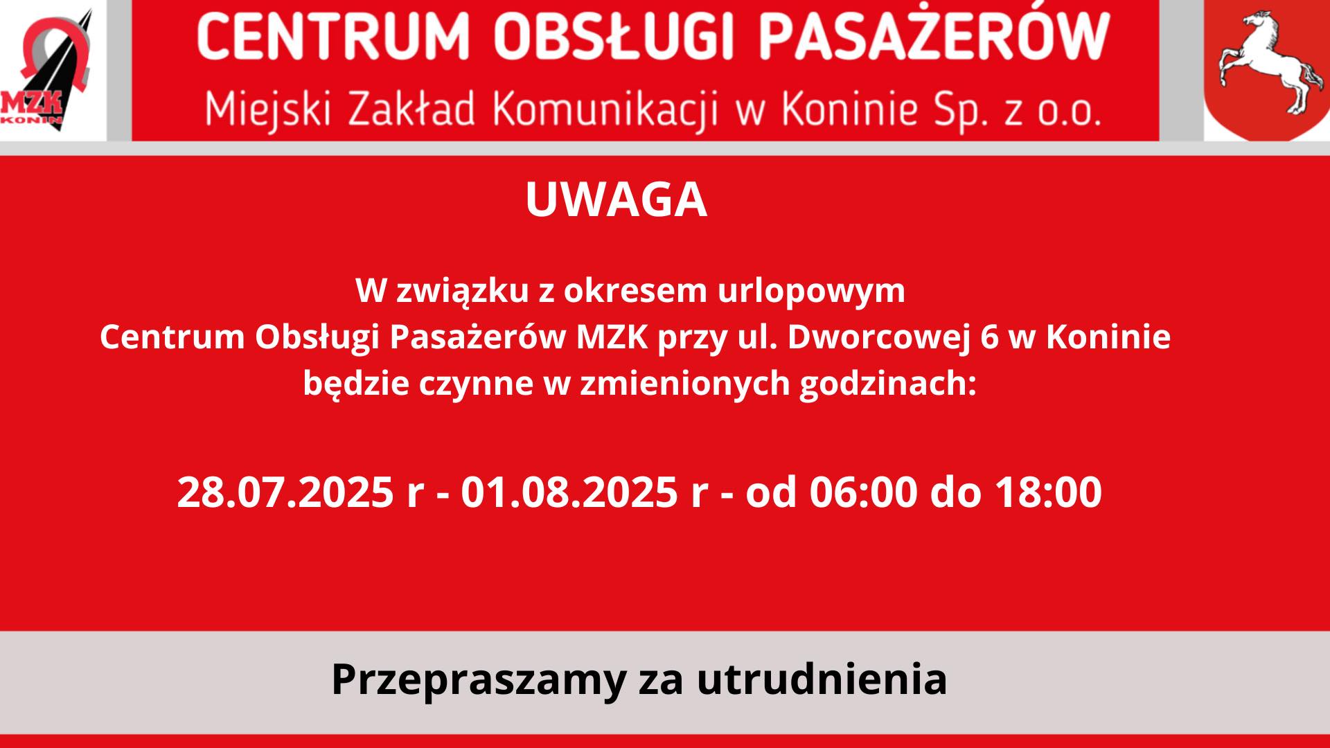 Komunikat MZK Konin Sygnał 24 28/07/2025 Mniej niż 1 min. PROMOCJA WydarzeniaZACHWYTNIKI 2025 – Wielkopolska pełna inspiracji!Redakcja - 20/10/20250ZdrowieNowoczesna Klinika Neurologii ICZMP – „Pomagamy Jak Umiemy” RossmannRedakcja LP - 14/10/20250AktualnościROSSMANN „MOJA DROGERIA” – NOWY WYMIAR ZAKUPÓW I BLISKOŚCIRedakcja - 10/10/20250AktualnościNoc Zawodowców 2025 w Kole – młodzież odkrywała zawody przyszłościRedakcja LP - 06/10/20250Stare MiastoHubertowski Piknik Myśliwski – tradycja i integracja w Starym MieścieRedakcja LP - 03/10/20250 FacebookTwitterWhatsApp MASZ WAŻNĄ WIADOMOŚĆ? Prześlij do naszej redakcji zdjęcie, film, lub informację! +48 63 242 01 01 - Reklama - PROMOCJA WydarzeniaZACHWYTNIKI 2025 – Wielkopolska pełna inspiracji!Redakcja - 20/10/20250ZdrowieNowoczesna Klinika Neurologii ICZMP – „Pomagamy Jak Umiemy” RossmannRedakcja LP - 14/10/20250AktualnościROSSMANN „MOJA DROGERIA” – NOWY WYMIAR ZAKUPÓW I BLISKOŚCIRedakcja - 10/10/20250AktualnościNoc Zawodowców 2025 w Kole – młodzież odkrywała zawody przyszłościRedakcja LP - 06/10/20250Stare MiastoHubertowski Piknik Myśliwski – tradycja i integracja w Starym MieścieRedakcja LP - 03/10/20250 TagiCentrum Obsługi PasażerakomunikatMZKutrudnieniaZmienione godziny Redakcjahttps://konin24.info Szukaj Konin umiarkowane opady deszczu enter location 7.9 ° C 7.9 ° 7.9 ° 90 % 5.2kmh 100 % wt. 9 ° śr. 12 ° czw. 12 ° pt. 12 ° sob. 14 ° Sygnał24INFO Uwaga! Fałszywi ankieterzy w gminie Kramsk – ważny komunikat dla mieszkańców 28/10/2025 Tymczasowa zmiana organizacji ruchu w Wilczogórze 28/10/2025 Urząd Miejski w Golinie będzie nieczynny 10 listopada 28/10/2025 Dewastował kosz na śmieci – interweniowała Straż Miejska w Koninie 28/10/2025 Zatrzymany złodziej alkoholu w Koninie – rozpoznał go pracownik ochrony 27/10/2025 Poprzedni artykułRODZINNA ATMOSFERA PRZY SZACHOWNICY – TURNIEJ W ŚLESINIENastępny artykułKULTURALNE LATO POD DACHEM – BIBLIOTEKA ZAPRASZA NA WARSZTATY I WYSTAWY Mogłeś przegapić Uwaga! Fałszywi ankieterzy w gminie Kramsk – ważny komunikat dla mieszkańców Kramsk 28/10/2025 Tymczasowa zmiana organizacji ruchu w Wilczogórze Wilczyn 28/10/2025 Urząd Miejski w Golinie będzie nieczynny 10 listopada Sygnał 24 28/10/2025