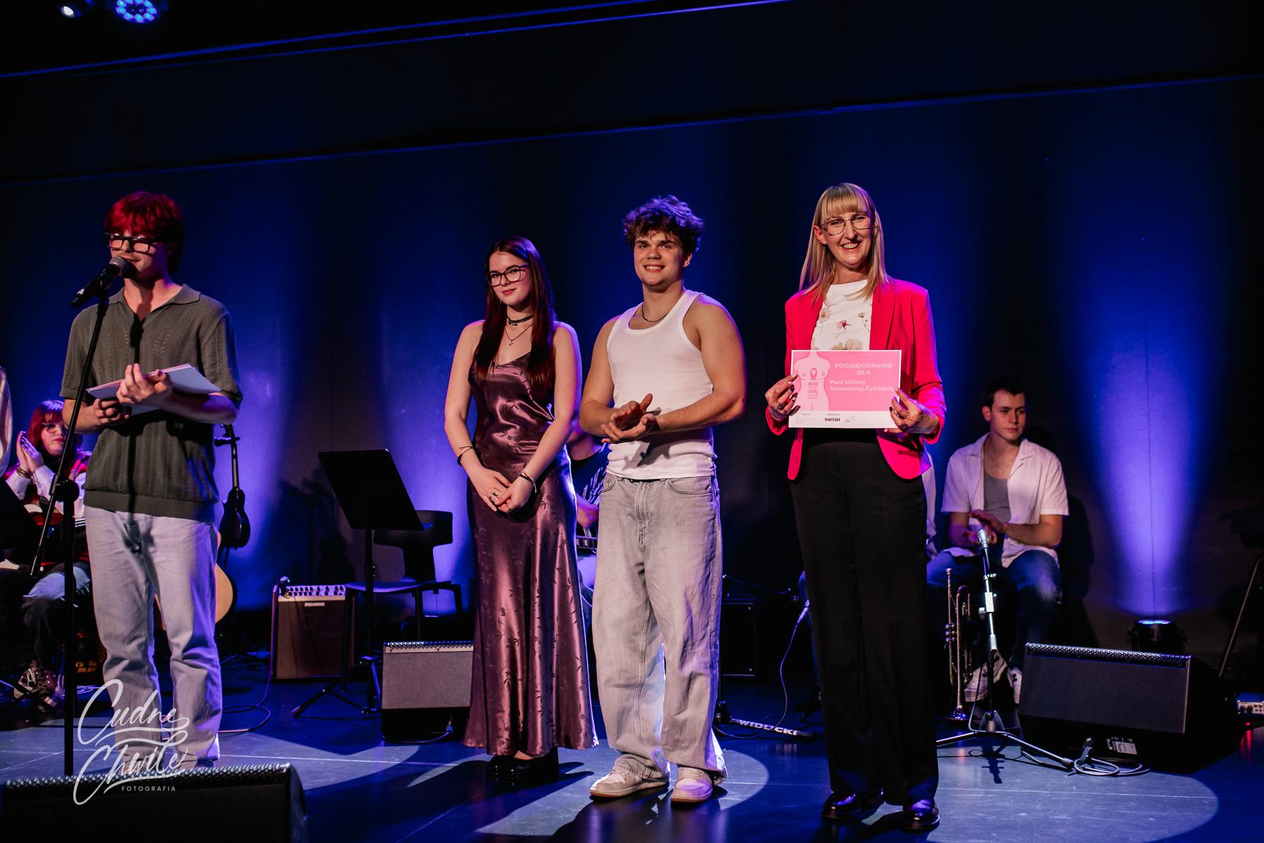 Kluczowym punktem programu była część edukacyjna prowadzona przez Wojtka Kałużnego, z udziałem Mileny Nowackiej-Żylińskiej. Jej wzruszająca historia wygranej z rakiem piersi uwypukliła wagę badań profilaktycznych, samokontroli oraz wsparcia bliskich w trudnych momentach. Wydarzenie stało się przestrzenią refleksji, solidarności i nadziei, pokazując, że młodzież potrafi tworzyć projekty łączące sztukę i społeczną wrażliwość.