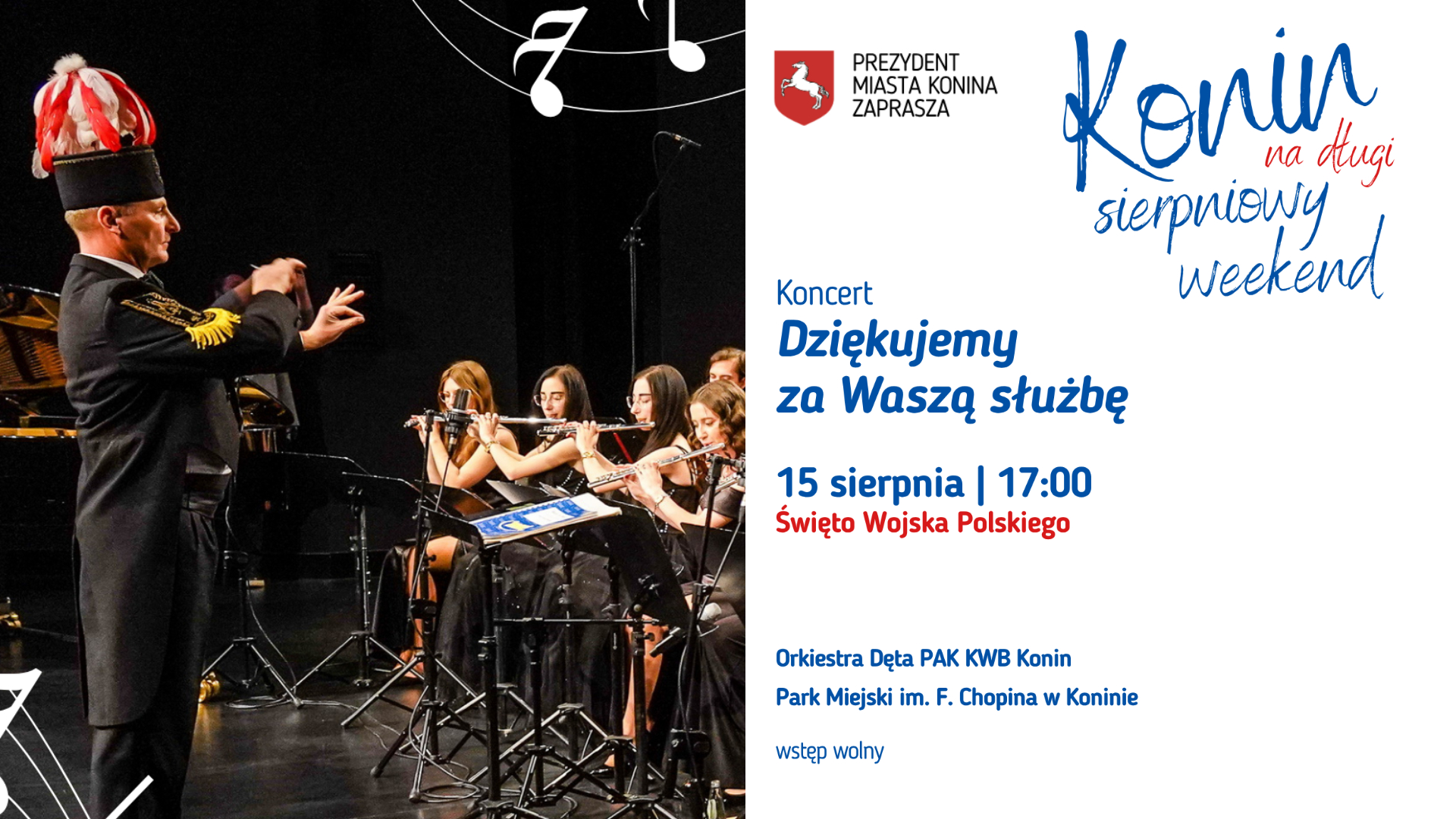 Oddajmy hołd żołnierzom, którzy walczyli o wolność Polski i tym, którzy dziś dbają o nasze bezpieczeństwo. W koncercie wystąpi Orkiestra Dęta PAK KWB Konin pod batutą Mirosława Pacześnego.