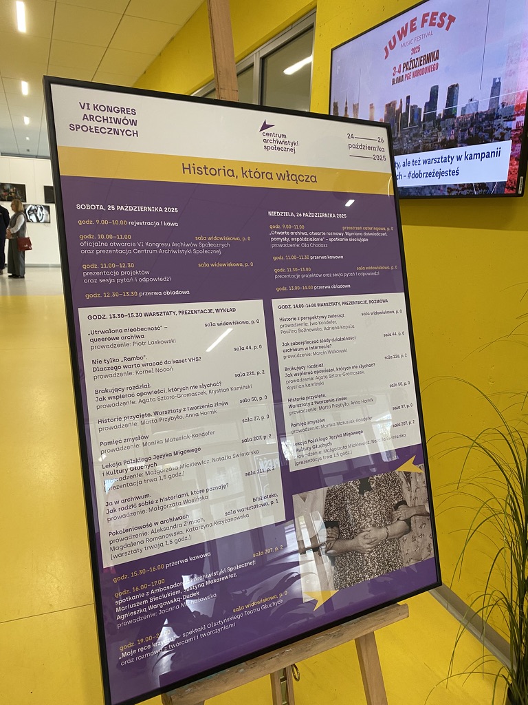 Konińskie Archiwum Społeczne uczestniczyło w VI Kongresie Archiwów Społecznych, który odbył się w dniach 24–26 października 2025 roku pod hasłem „Historia, która włącza”. Wydarzenie, organizowane co dwa lata przez Centrum Archiwistyki Społecznej, to jedno z najważniejszych spotkań środowiska zajmującego się historią mówioną, dokumentacją fotograficzną i badaniem lokalnych dziejów.