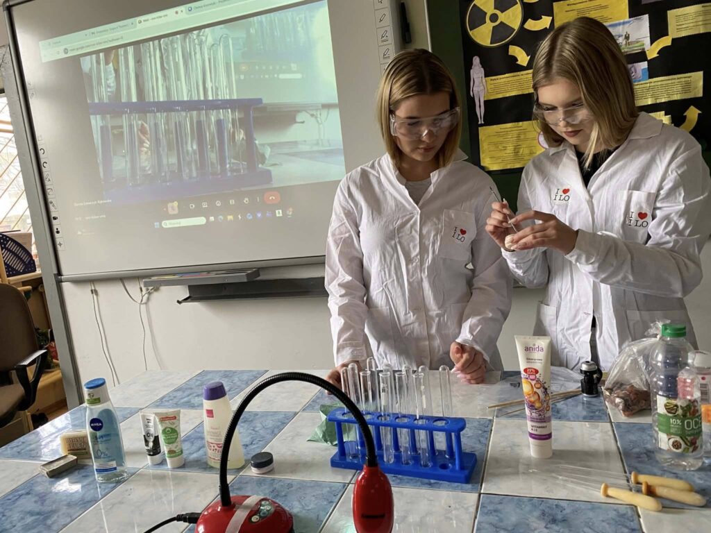 W I Liceum Ogólnokształcącym im. Tadeusza Kościuszki w Koninie odbyła się otwarta lekcja chemii dla klasy 3D o profilu psychologicznym, podczas której młodzież pracowała metodą projektu edukacyjnego. Zespoły uczniowskie opracowywały cztery zagadnienia: chemię w praktyce, tworzywa sztuczne, czyszczenie i usuwanie zanieczyszczeń oraz kosmetyki. Tak zorganizowane zajęcia sprzyjały współpracy i pozwoliły na świadome korzystanie z informacji, co jest kluczowym elementem nowoczesnej edukacji.