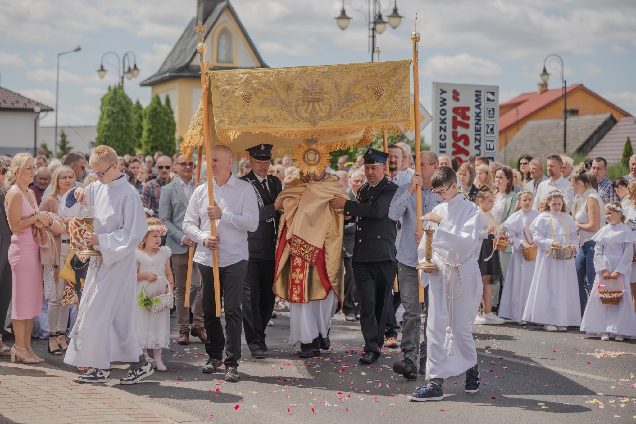 Po Mszy świętej ulicami Lichenia przeszła tradycyjna procesja eucharystyczna, niosąc świadectwo wiary poza mury kościoła. Monstrancja z Najświętszym Sakramentem była niesiona przez kapłanów wśród modlitw, śpiewów i poruszenia wiernych, którzy przybyli nie tylko z okolicy, ale i z odległych miejsc, by uczcić obecność Jezusa pośród ludzi.