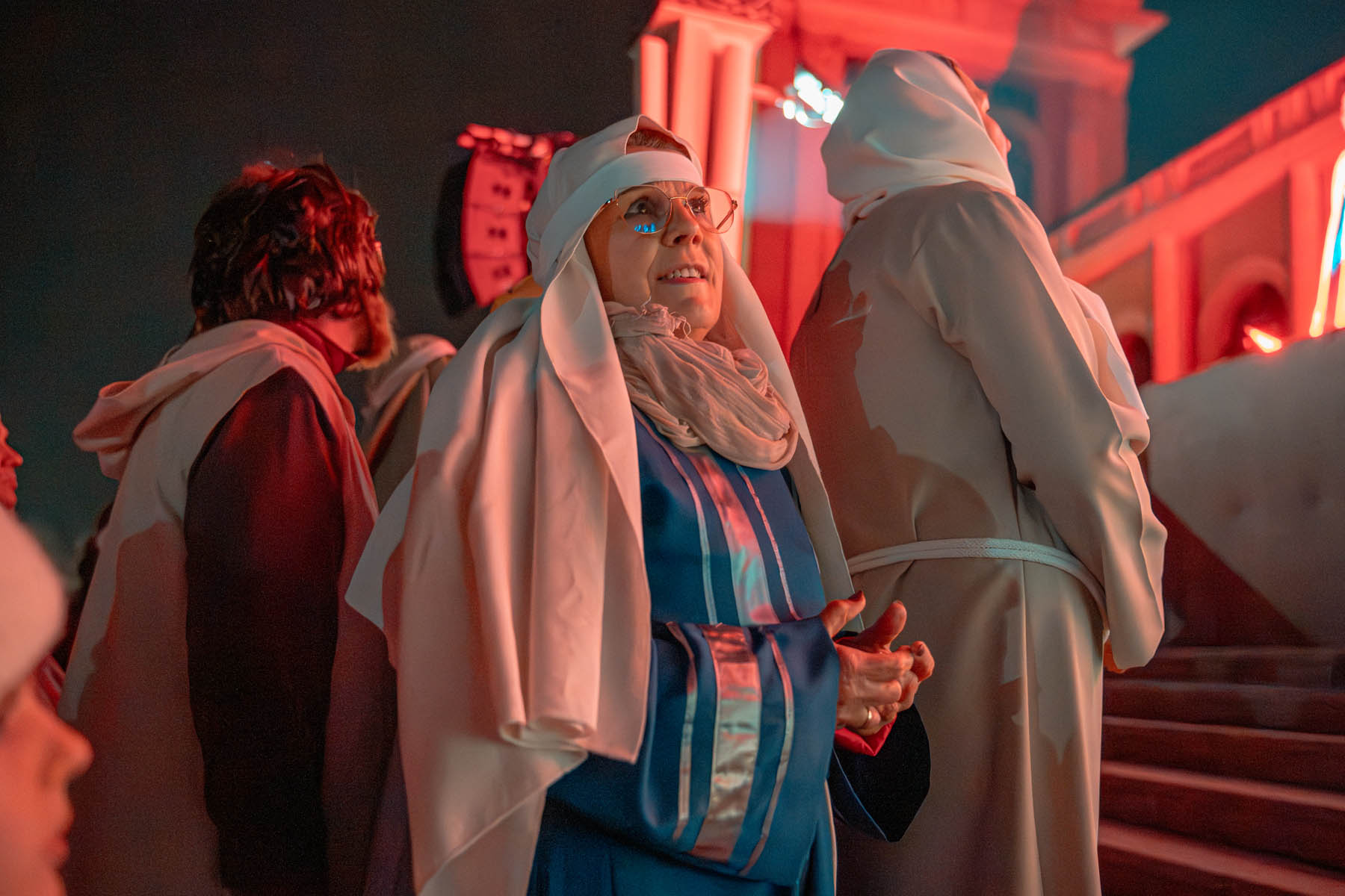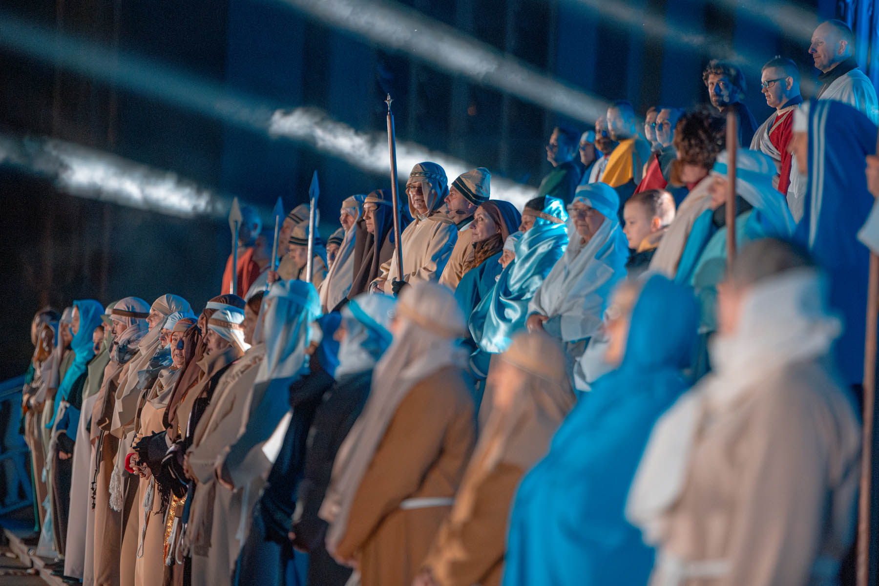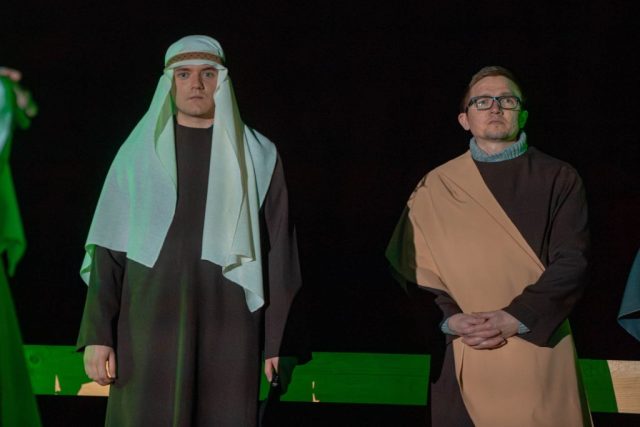 Na scenie wystąpiło około 60 osób. Byli to mieszkańcy okolicznych miejscowości oraz przyjaciele sanktuarium, którzy poświęcili swój czas na wielotygodniowe przygotowania. Co więcej, skala ich zaangażowania była imponująca. Jeden z aktorów dojeżdżał na próby z miejscowości oddalonej o blisko 60 kilometrów. Dzięki temu całe widowisko nabrało wyjątkowego charakteru.