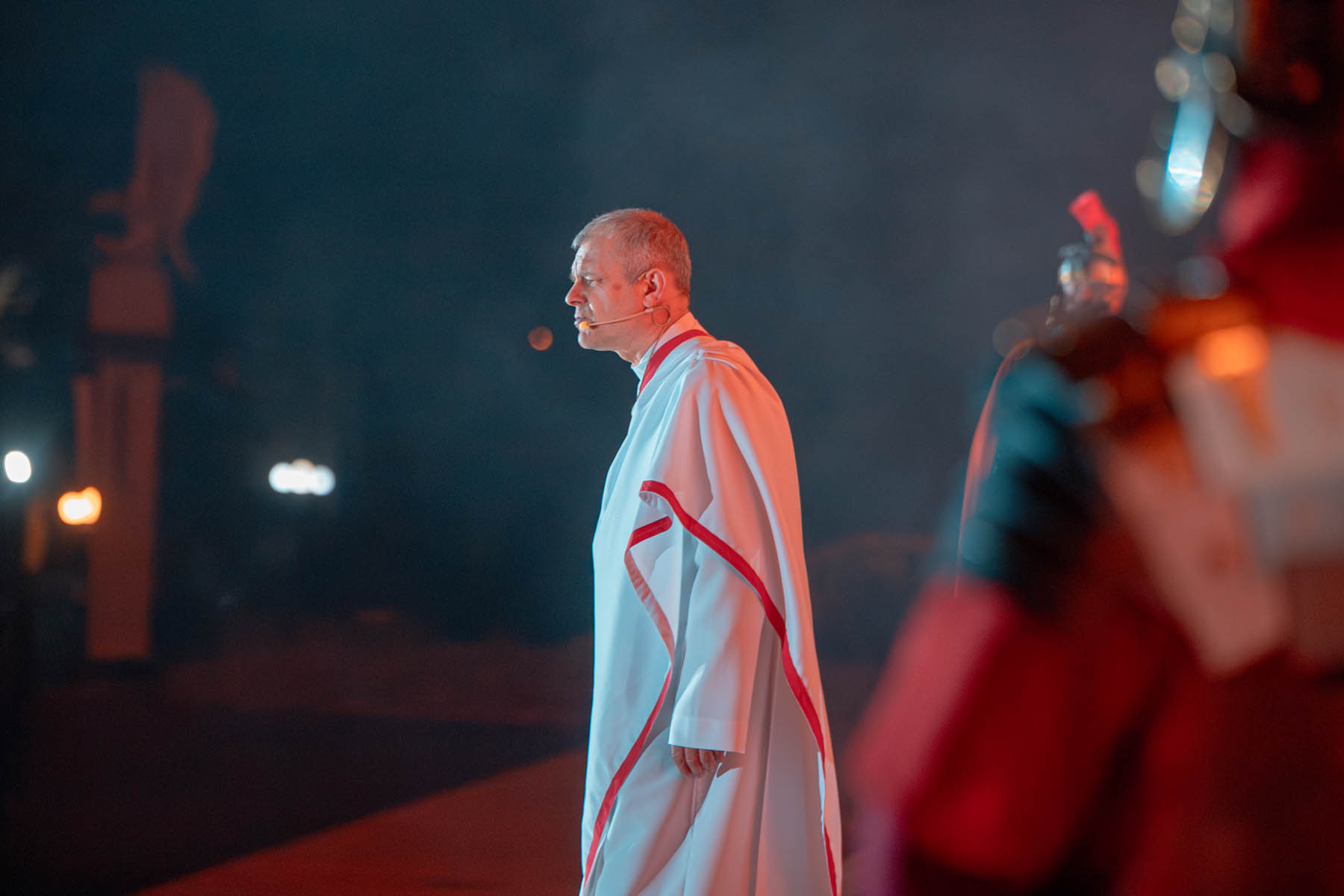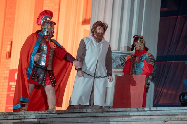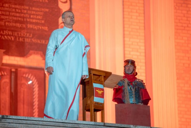 Za tegoroczną inscenizację odpowiadał ks. Adam Stankiewicz MIC – wicekustosz sanktuarium i przełożony licheńskiego domu zakonnego księży marianów. Co istotne, nie tylko reżyserował spektakl, ale również wcielił się w rolę Jezusa.