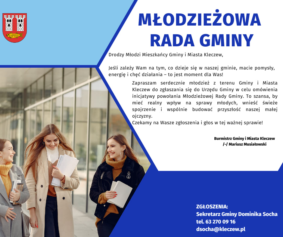 Wszystko zależy od Was – młodych mieszkańców Kleczewa. Inicjatywa zostanie zrealizowana, jeśli znajdą się chętni do współtworzenia rady i aktywnego uczestnictwa w jej działaniach. To szansa na realny wpływ na otaczającą rzeczywistość.