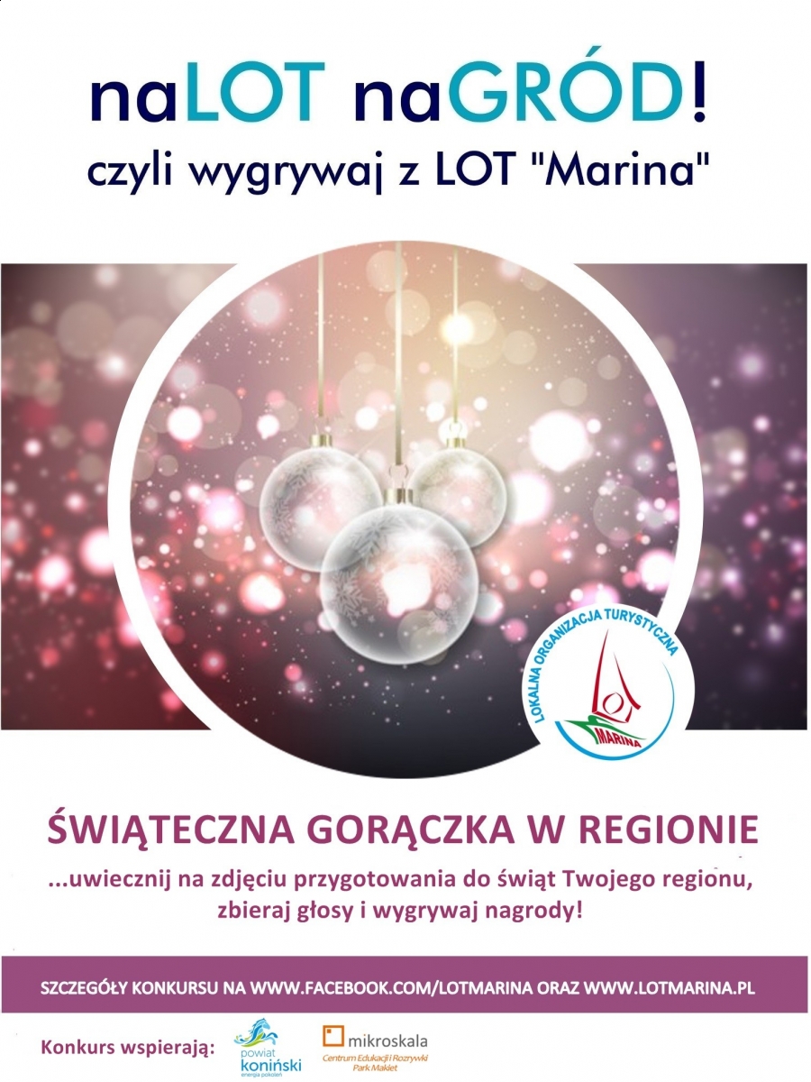 W ramach konkursu „Świąteczna gorączka w regionie” Lokalna Organizacja Turystyczna Marina zachęca mieszkańców miasta Konina i powiatu konińskiego, by dali się ponieść świątecznej gorączce i uwiecznili na zdjęciach, jak ich najbliższa okolica zmieniła się w ten wyjątkowy, przedświąteczny czas.