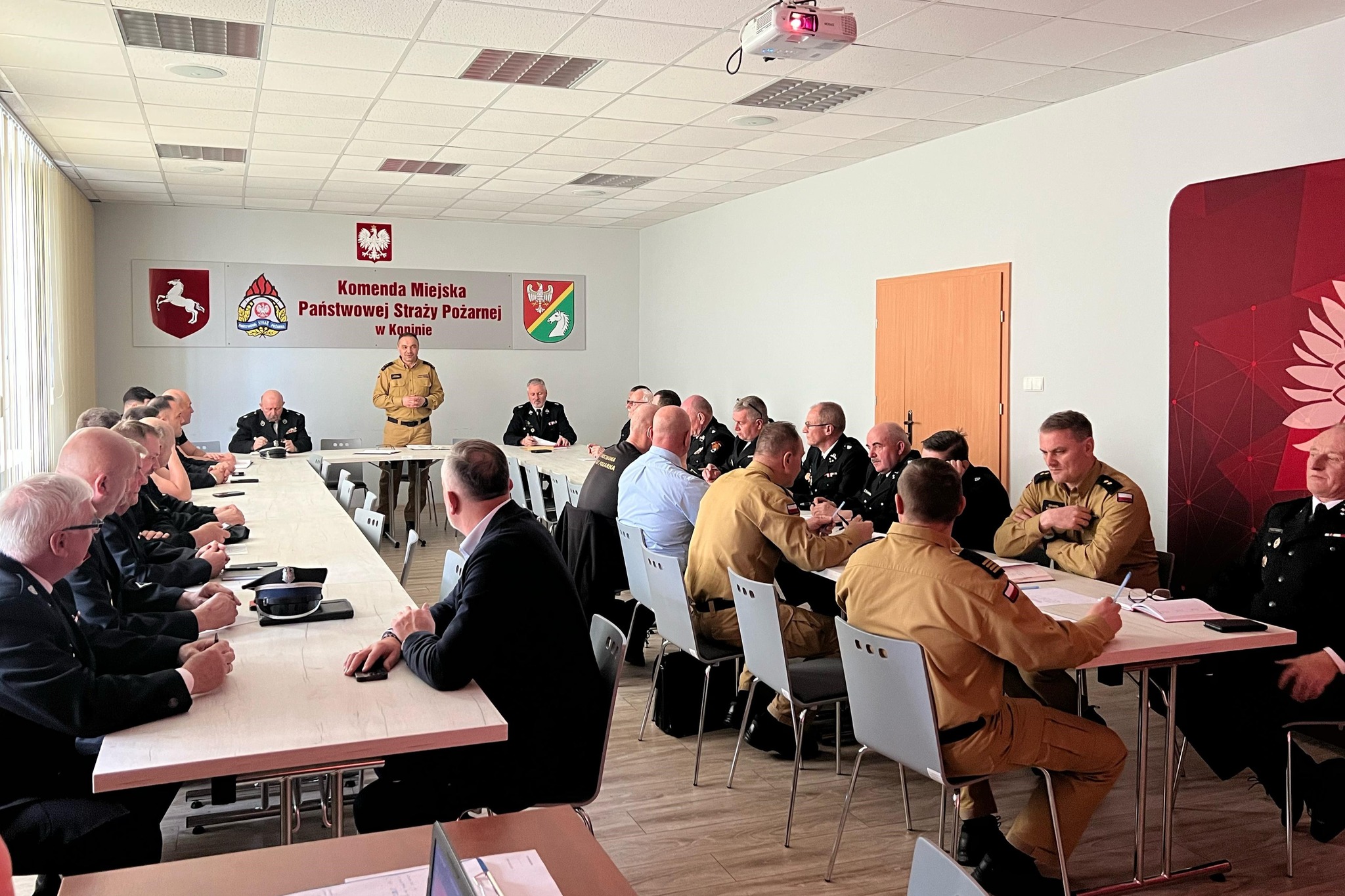 W poniedziałek, 14 kwietnia 2025 roku, o godzinie 15:30 w świetlicy Komendy Miejskiej Państwowej Straży Pożarnej w Koninie odbyła się narada operacyjna z udziałem Zarządu Oddziału Powiatowego Ziemskiego Związku Ochotniczych Straży Pożarnych RP w Koninie, Zarządu Oddziału Powiatowego Grodzkiego ZOSP RP, Komendantów Gminnych ZOSP RP oraz Naczelników jednostek OSP włączonych do Krajowego Systemu Ratowniczo-Gaśniczego.