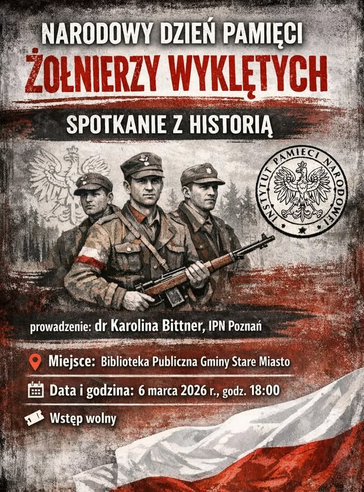 Narodowy Dzień Pamięci Żołnierzy Wyklętych w Starym Mieście będzie okazją do refleksji nad losami bohaterów powojennego podziemia niepodległościowego. 6 marca 2026 roku w Bibliotece Publicznej Gminy Stare Miasto odbędzie się spotkanie z historią poświęcone pamięci Żołnierzy Niezłomnych.
